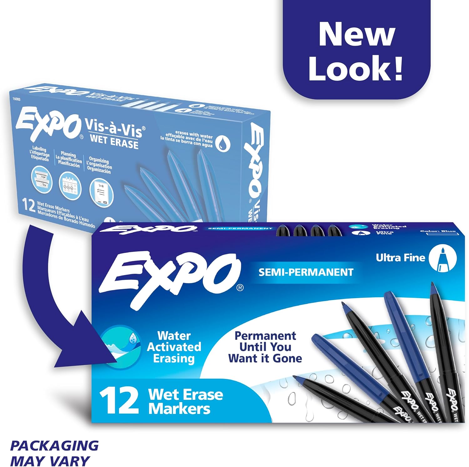 EXPO Wet Erase Markers, Semi-Permanent Markers, Blue, Ultra Fine Tip, 12 Count