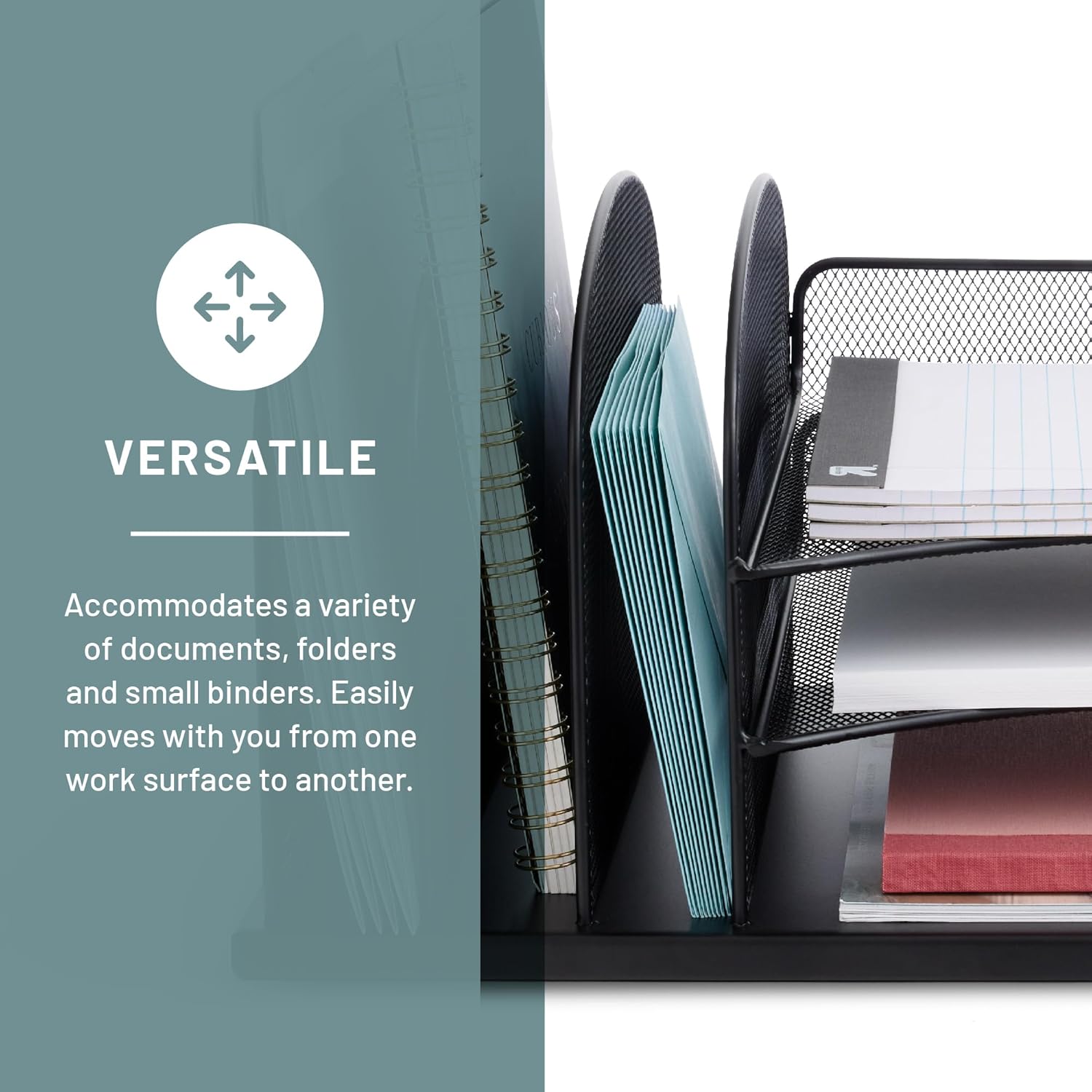 Safco Onyx Desk Organizer, 3 Vertical Compartments and 3 Trays, Office and Classroom Mailbox , Paper and Mail Sorter, Steel Mesh, Black