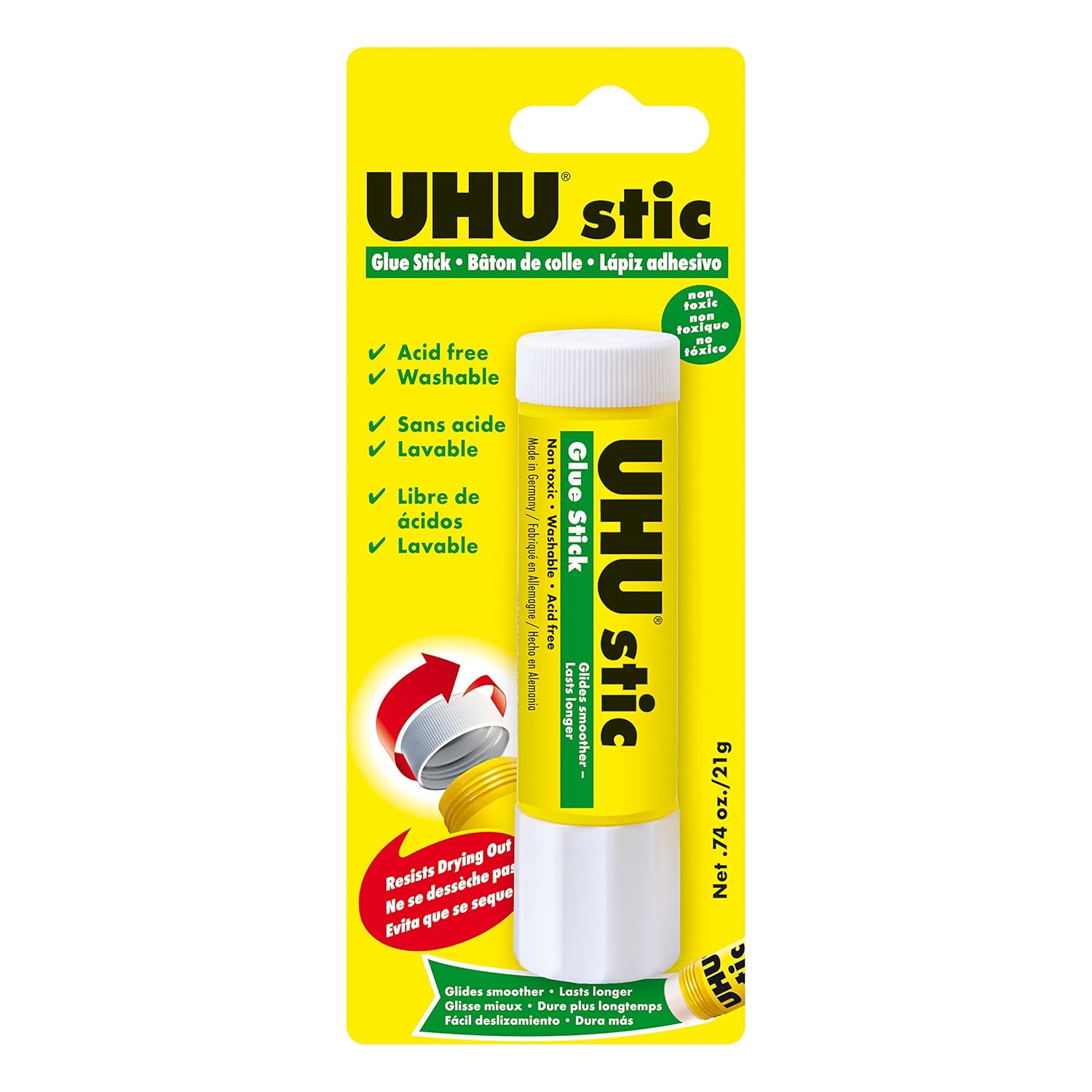UHU stic, Glue Stick Solvent Free, Washable, Screw on Cap, for School, Crafts, Scrapbooking 1 x 21g Blister, White