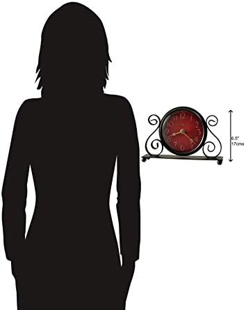 - PRECISE MECHANISM: Engineered for accuracy and style, this scrolling iron clock boasts a captivating red dial table clock appearance that draws the eye. Powered by a dependable quartz movement clock system, it delivers precise timekeeping while evoking the allure of a vintage style table clock. The intricate scroll details add both character and durability, making it a reliable addition to your decor.