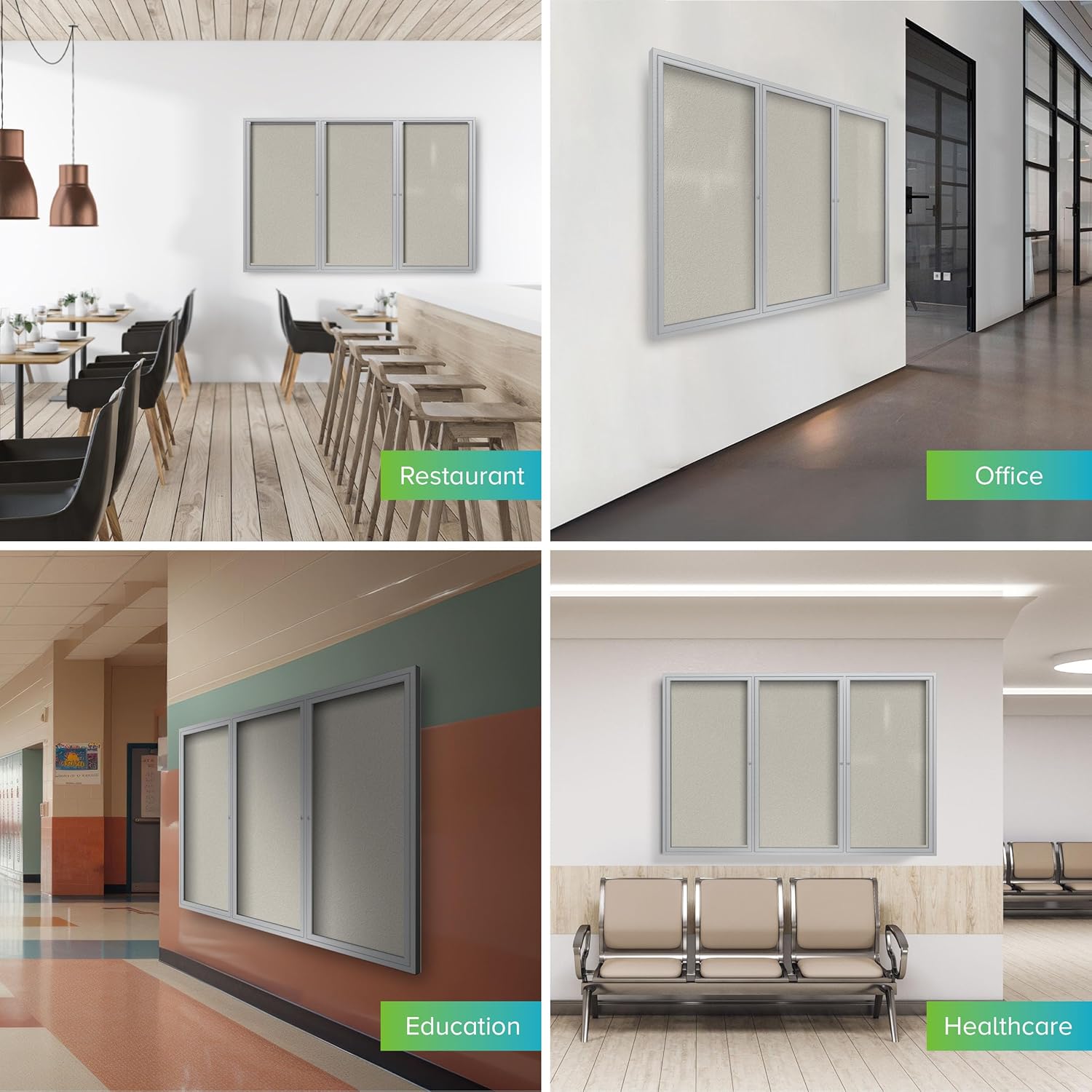 Ghent 48"x96" 3-Door Outdoor Enclosed Vinyl Bulletin Board, Shatter Resistant, with Lock, Satin Aluminum Frame - Ivory (PA34896VX-185), Made in the USA