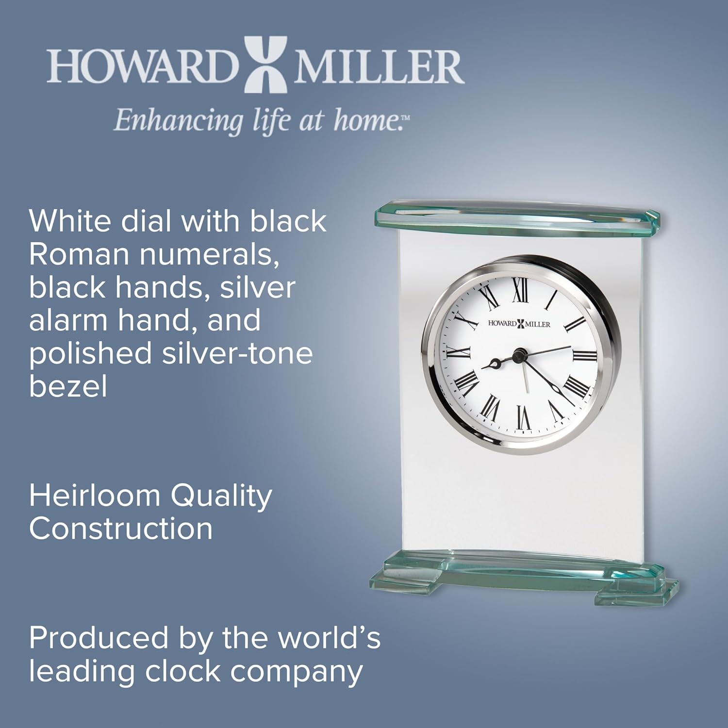 - QUALITY ASSURANCE: Indulge in the trusted craftsmanship of a howard miller clock, recognized for blending timeless design with modern innovations. This small glass clock is a thoughtful gift clock for home or office, showcasing the brand’s commitment to quality. From its beveled edges to its precise alarm function, every detail is meticulously crafted for enduring beauty.