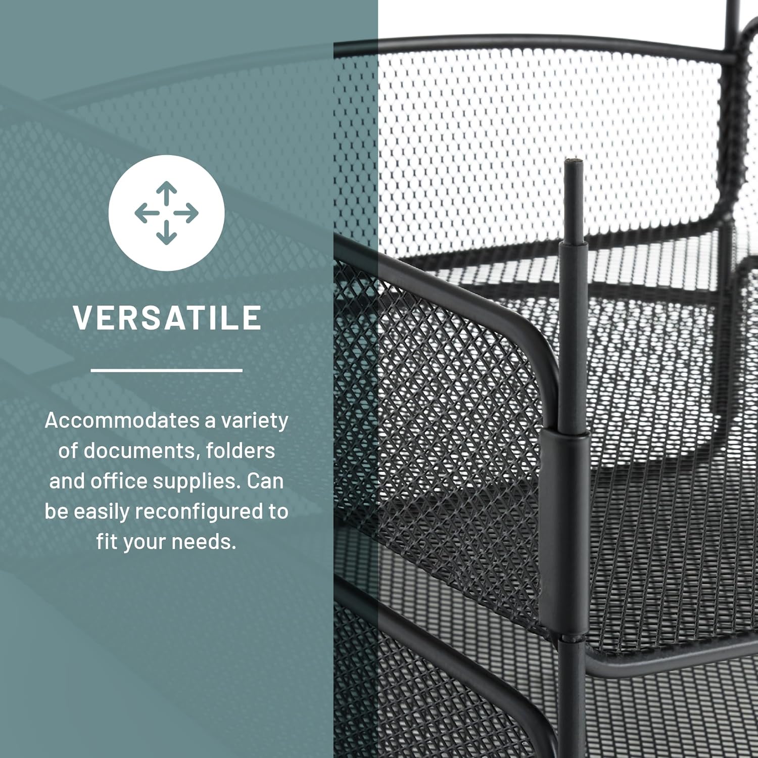 Safco Onyx Desk Organizer, 3 Trays, Office and Classroom Mailbox, Paper and Mail Sorter, Steel Mesh, Black