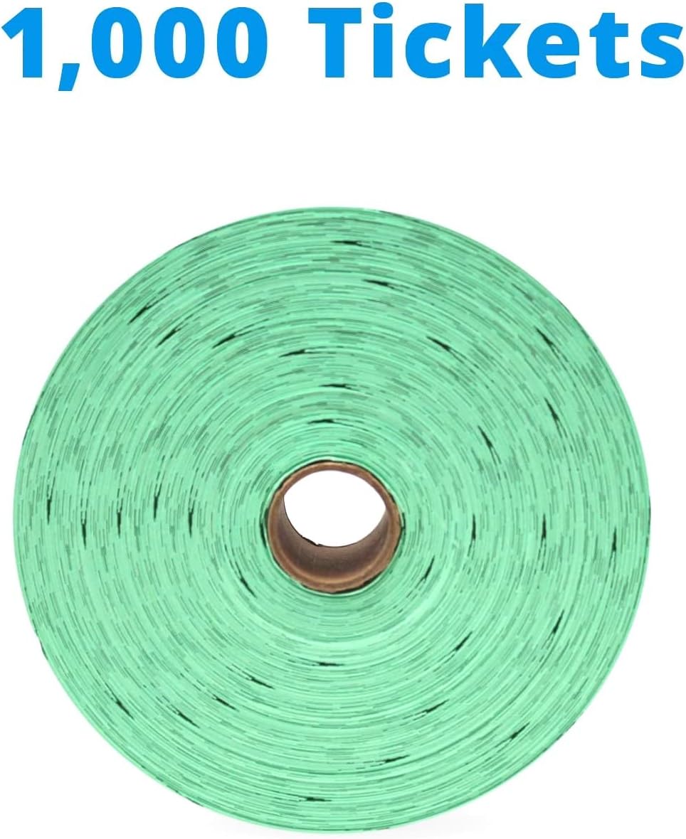 INDIANA TICKET CO. 1,000 Green Raffle Tickets Double Roll, Premium Quality 50/50 Raffle Tickets, Tickets for Events, Carnivals, Door Prizes, Drinks and More
