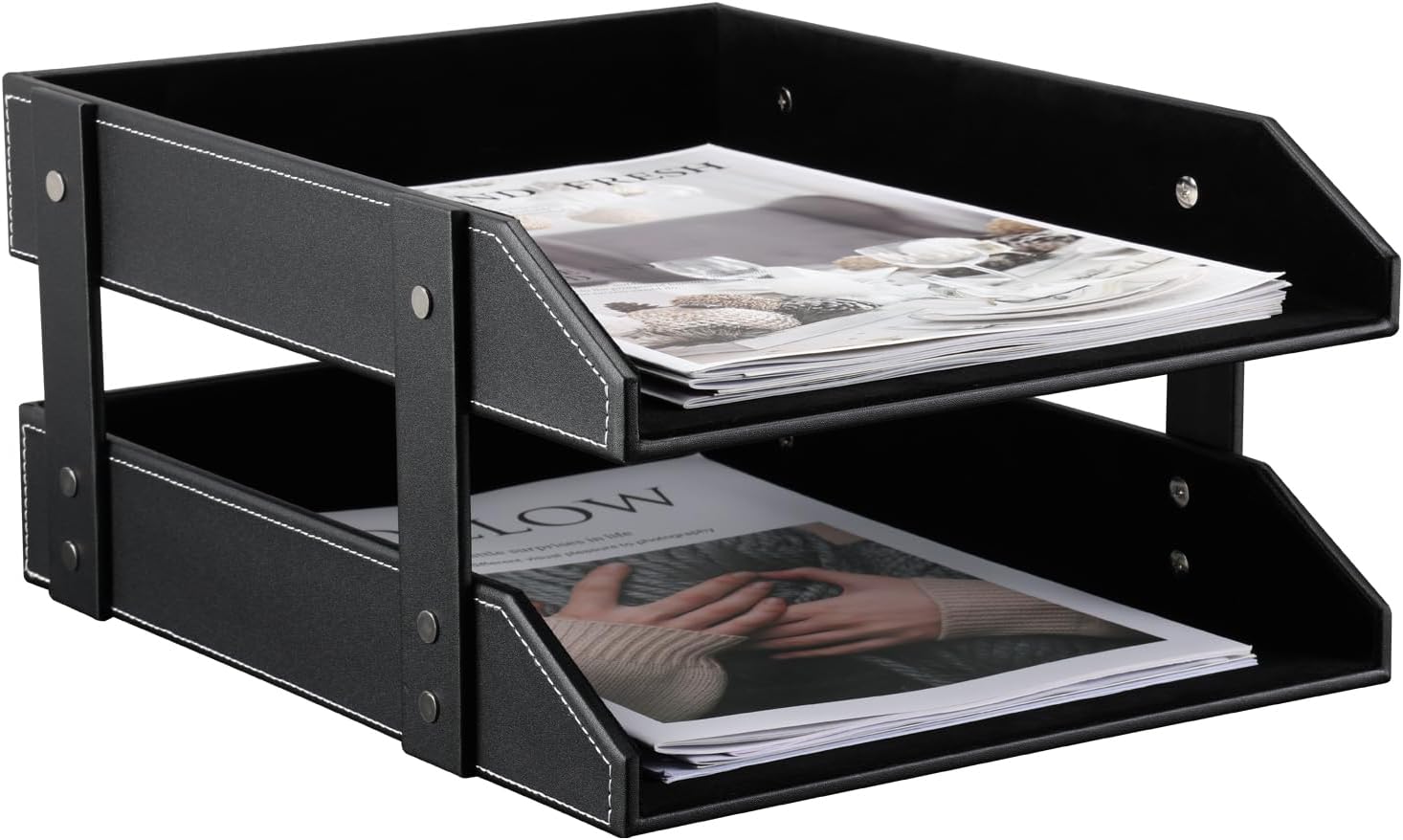 - 【Customize your Workspace】Give your office or home a professional look with this tiered letter tray. Spend less time looking for what you need and more time focusing on what matters, which will keep the stuff you need at hand, while staying out of your way. It is widely used in study, office, school, home, and so on making full use of your storage space.
