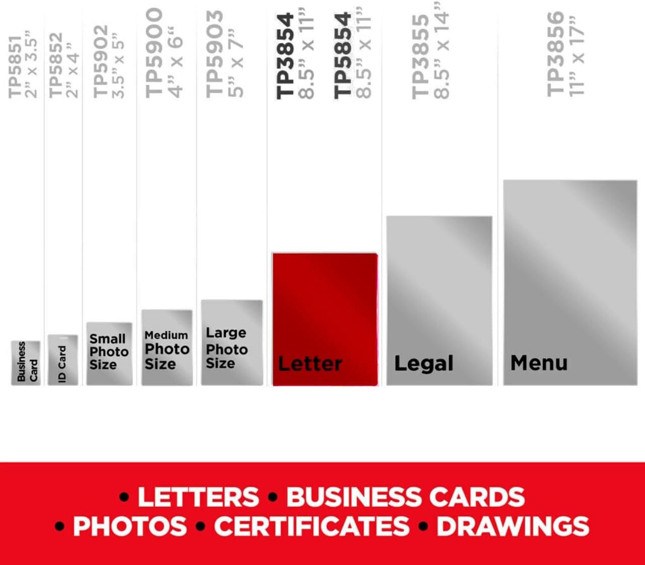 - FITS LETTER-SIZE POUCHES: One package contains letter-size pouches that fit items up to 8.9 in. x 11.4 in, ideal for laminator pouches