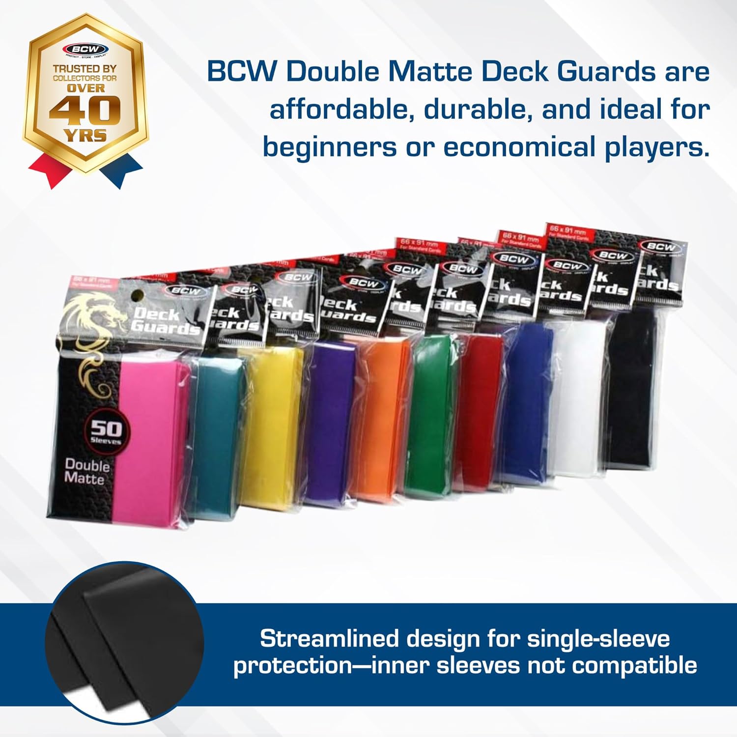 BCW Deck Guard - Double Matte Card Sleeves | 500 Count Box (10 Packs of 50 Sleeves) |Acid-Free, No PVC | Fits 2.5" x 3.5" Game Cards | Archival Safe Sleeves for Card Protection (Green)