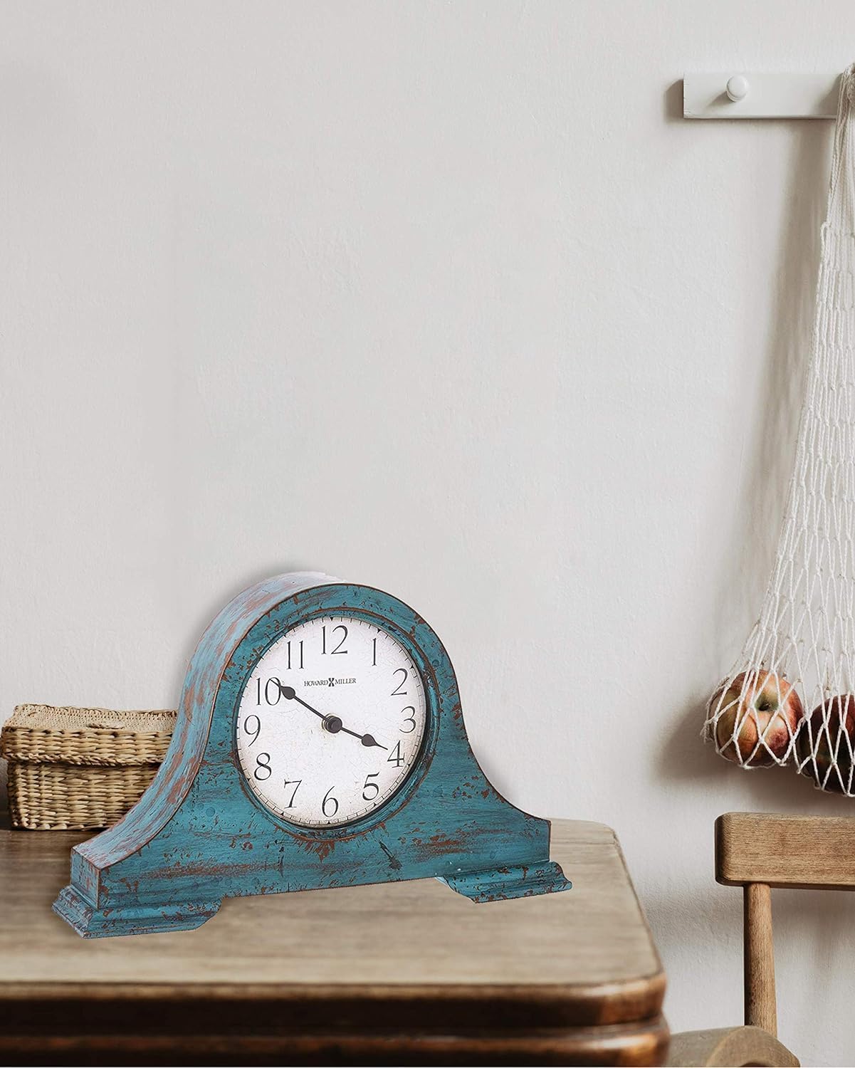Howard Miller Tamson Mantel Clock, Blue Finish Vintage Wooden Design Round Top Molding, White Analog Dial Quartz Movement Perfect for Home Decor, Office & Living Room, Battery Operated