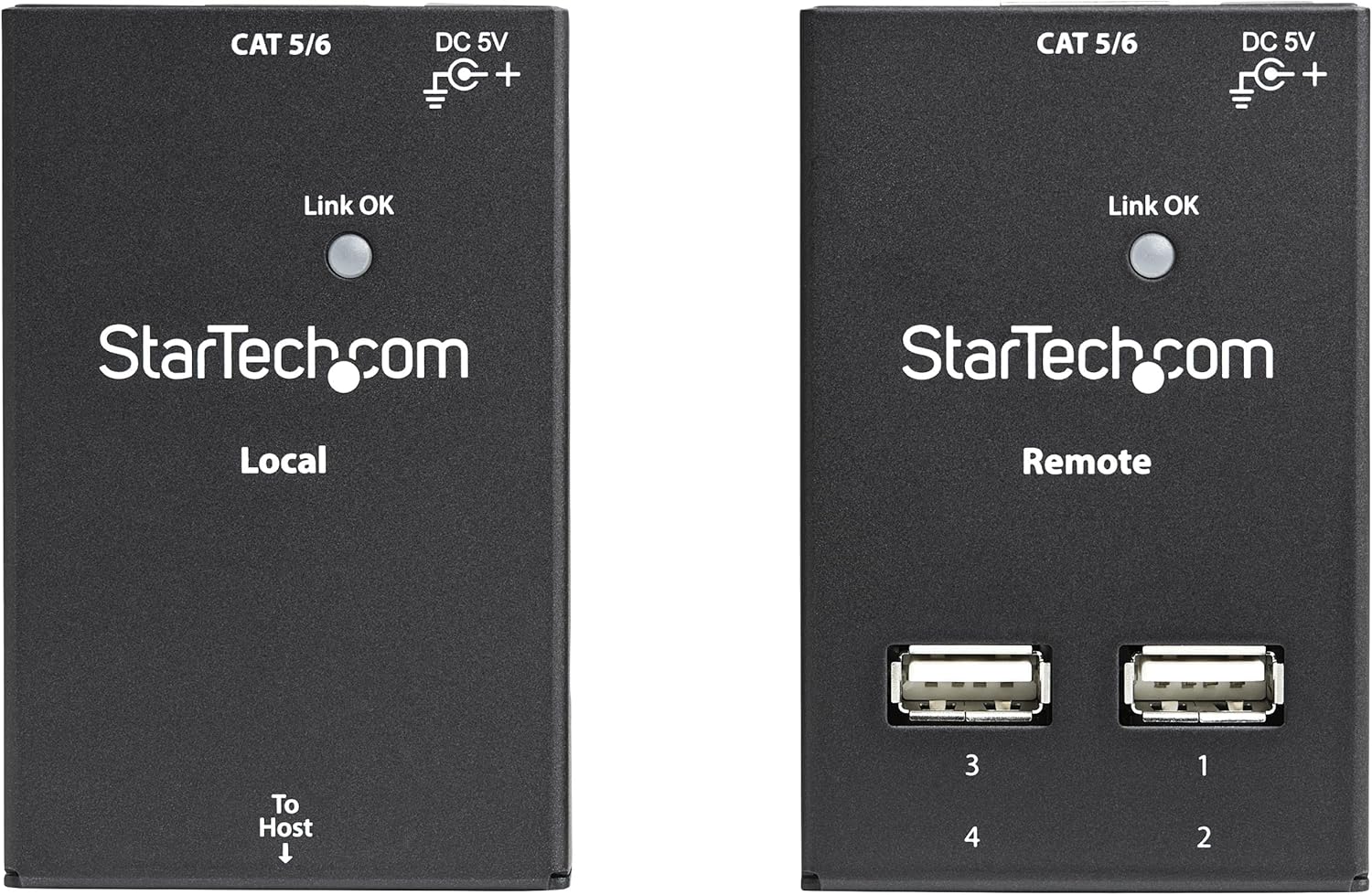 StarTech.com 4-Port USB 2.0 Extender - 130ft (40m) USB Over Cat5/Cat6 Extender - Compact USB 2.0 Over Ethernet Extender, TAA (USB2004EXTV)