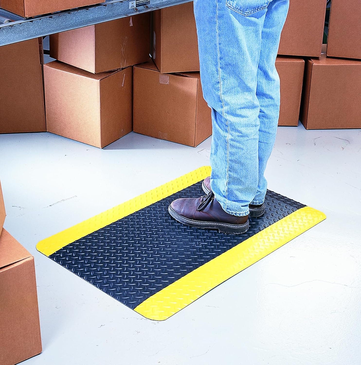 Wearwell 414.1516x2x6BYL Diamond-Plate SpongeCote UltraSoft Mat, 6' Length x 2' Width x 15/16" Thick, Black with Yellow