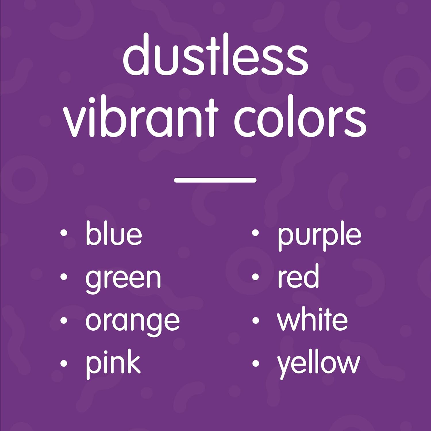 - MULTICOLOR: This multi-pack of dustless chalk comes in 8 vibrant colors, including blue, green, orange, pink, purple, red, white, and yellow chalk.