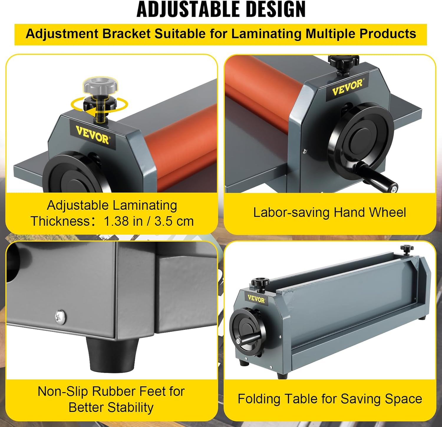 - ADJUSTABLE & FOLDING: Hand crank laminating machine adapts the adjustable roller position, suitable for various material thicknesses; the folding table is convenient for storage and easy to use.