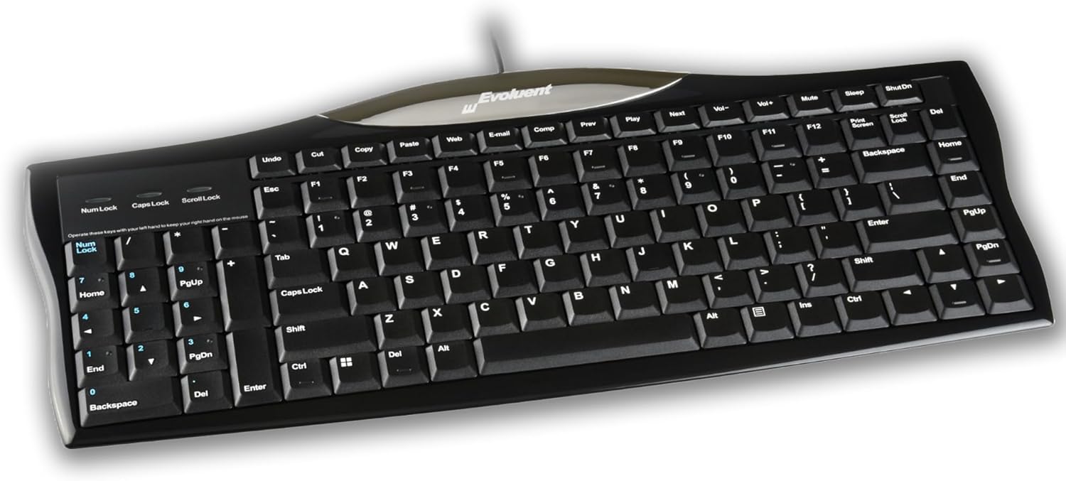 Evoluent R3K Reduced Reach Right-Hand Keyboard – Wired USB Compact with Numeric Pad, Ergonomic Computer Keyboards for Comfortable Typing, Black Full-Size PC Keyboard with One-Touch Shortcut Keys