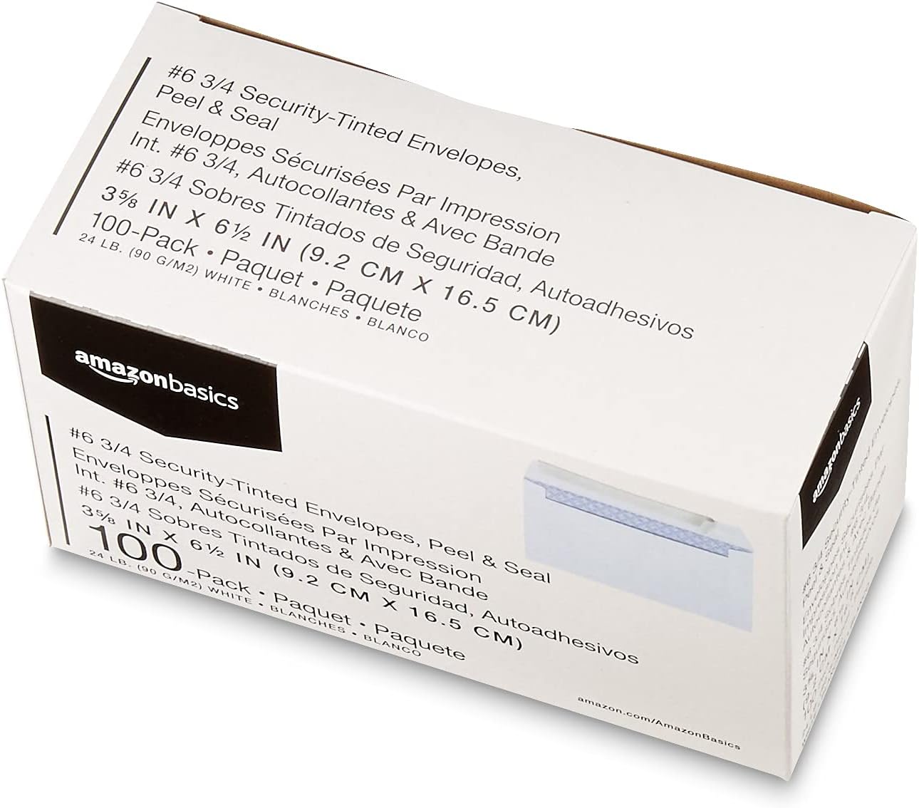 Amazon Basics Security Self-Seal Mailing Envelope, White, 6 3/4, 100-Pack