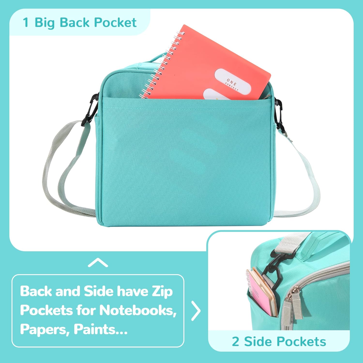 - Large Capacity - Main pocket + Net pocket + Back Pocket + Two Side Pockets