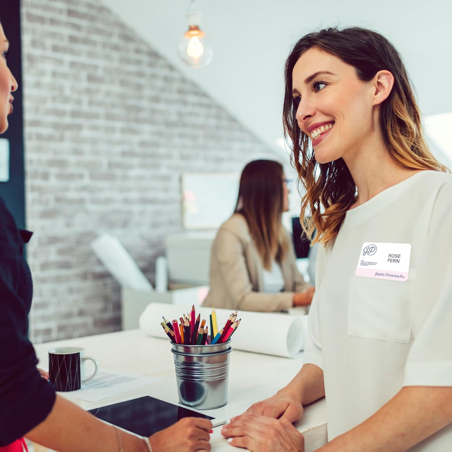- No need to worry about name tag stickers curling or falling off with these flexible name badges designed to move with clothing