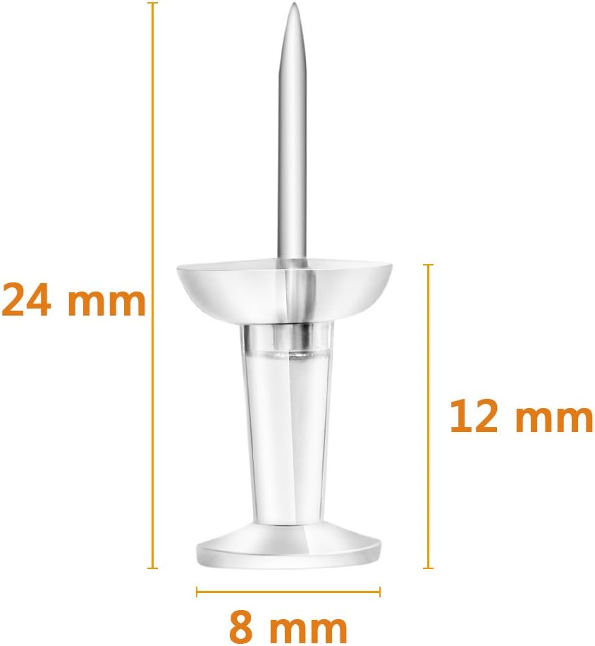 - These pushpins with sturdy clear plastic head and durable steel needle point.