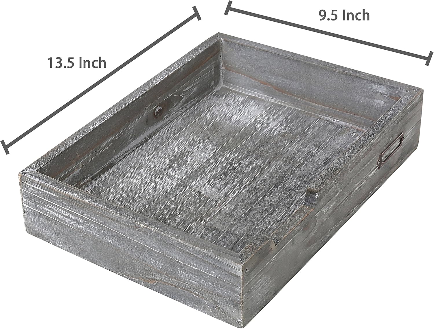 Set of 2 Ash Gray Wood Office Desktop Document Letter Paper Trays, Stackable Decorative Multipurpose File Organizer
