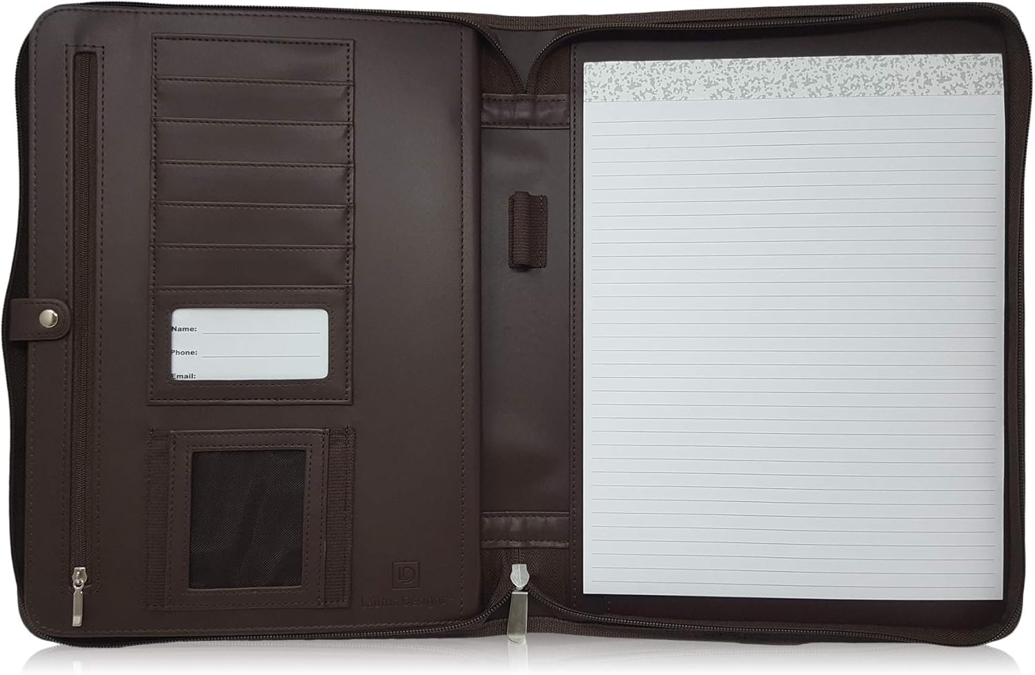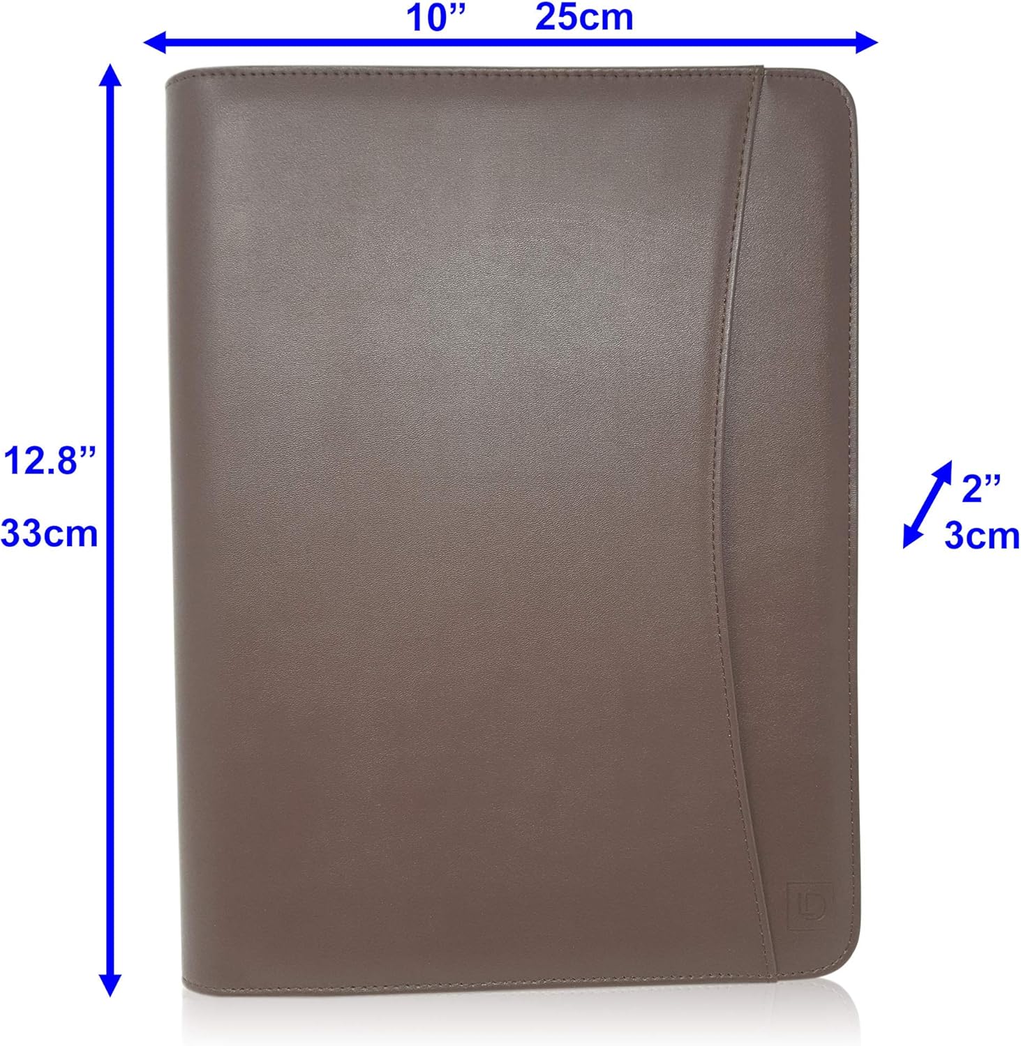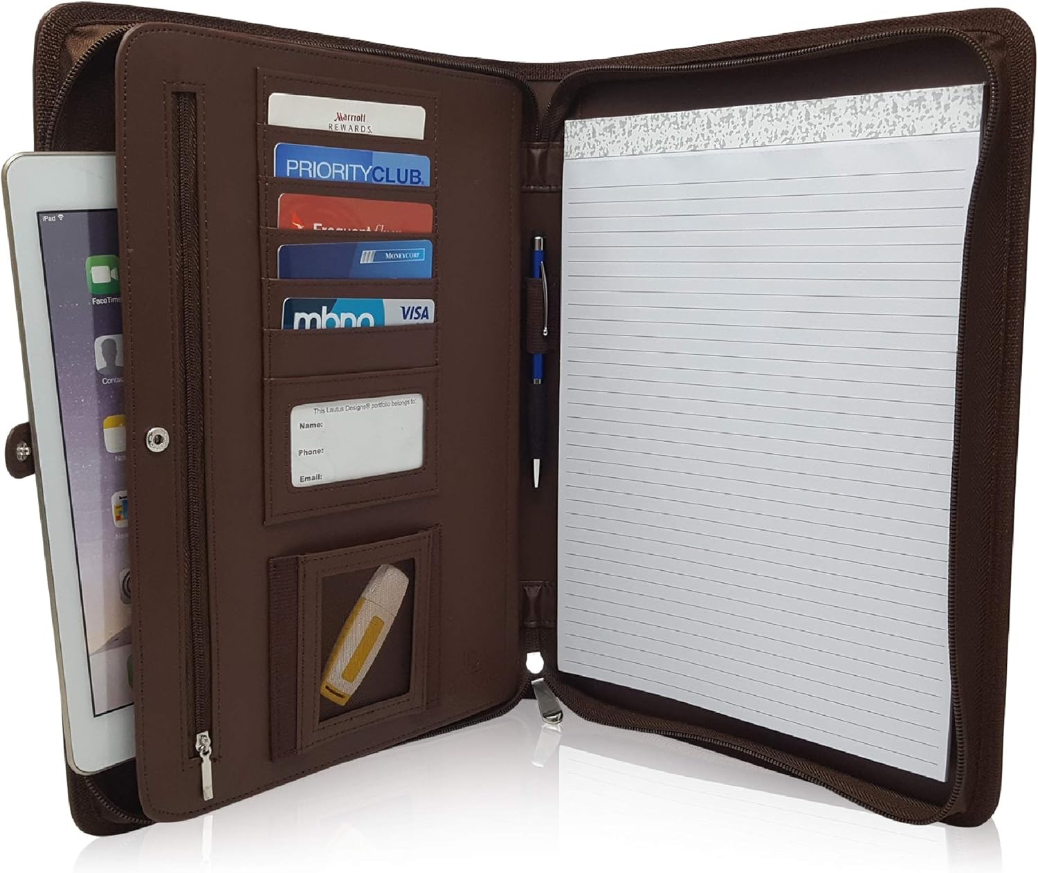 Dark Brown Zippered Portfolio Binder - PU Leather Business Portfolio Organizer - Padfolio for Men & Women with US Letter Notepad, 10.5 Inch Tablet Pocket & Gift Box by Lautus Designs