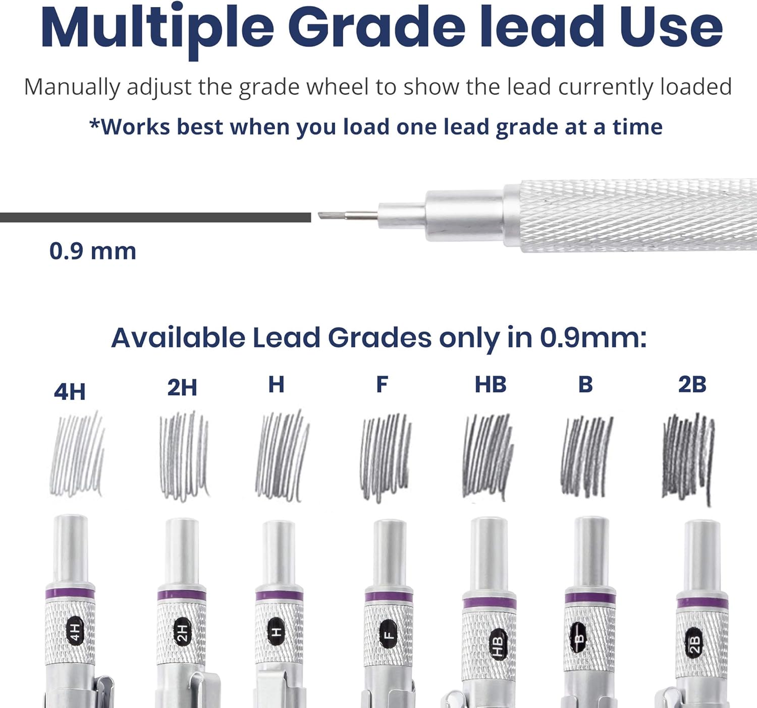 - LEAD DEGREE INDICATOR - The Chromagraph Metal Mechanical Pencil comes with a built-in lead degree indicator so you can remember the lead degree in the pencil easily. This feature makes it perfect for artists who need to work with different types of lead.