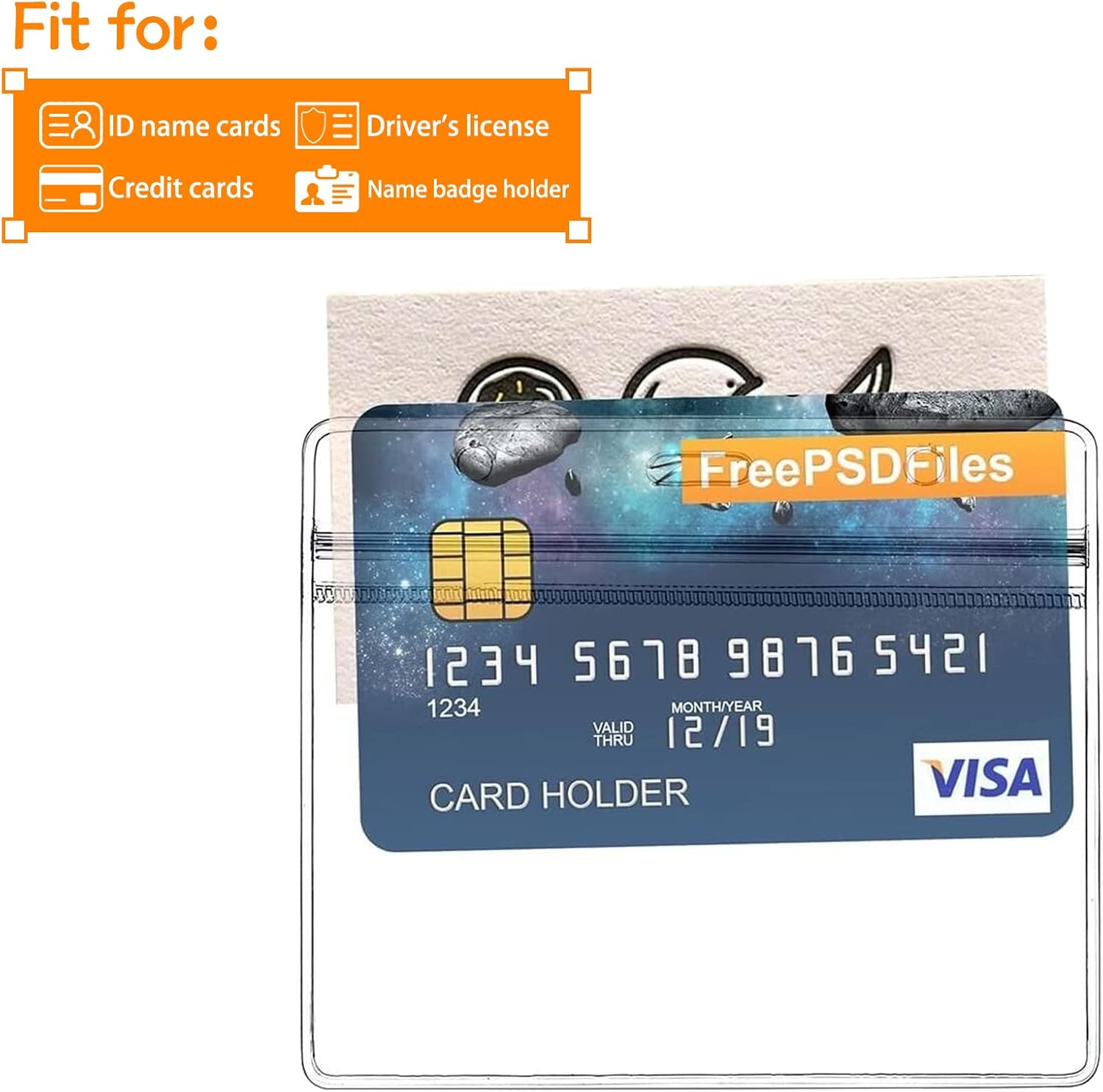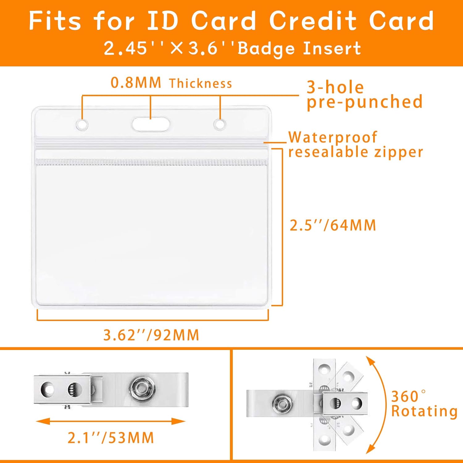 ID Badge Holder with Clip Clear Plastic Name Tag Holders Horizontal Ziplock Waterproof PVC ID Card Holder with Clip Straps(50 Pack, Horizontal 2.3X3.5)