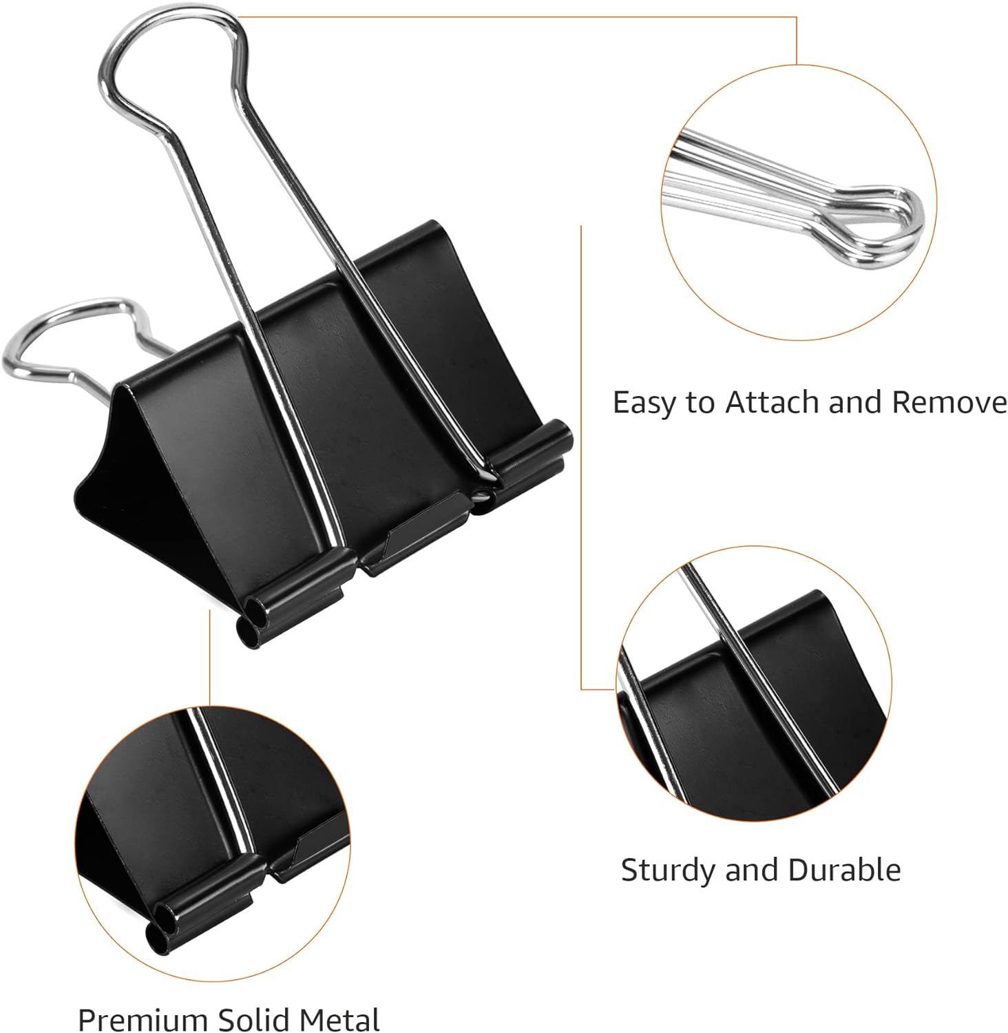 Amazon Basics Sturdy Binder Clips for Office Use, 48 Count (4 Pack of 12), Large, 2 in, Black