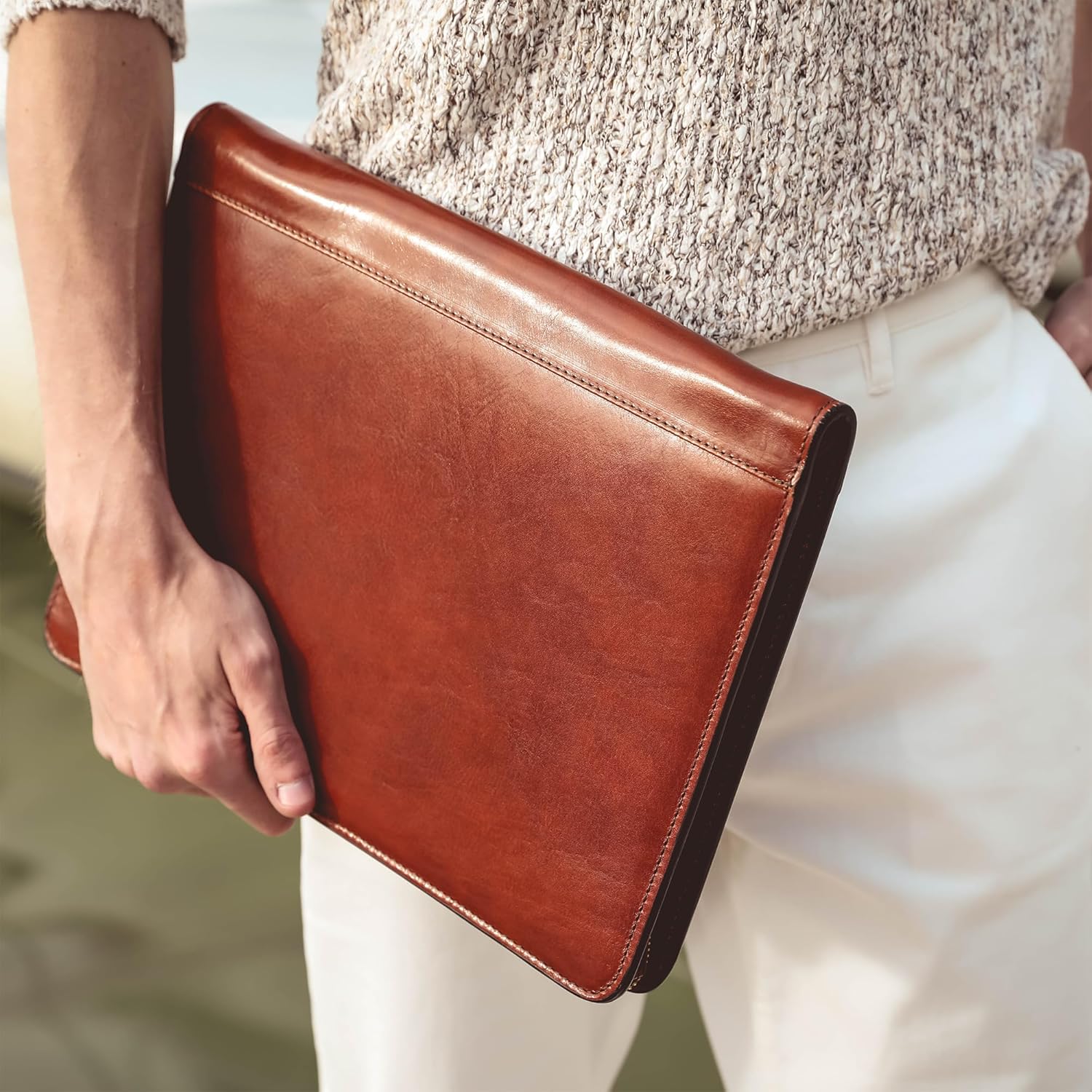 Time Resistance Leather Portfolio - A4 Document Folder - Italian Handcrafted Padfolio Organizer (Cognac Brown) - Gift Box Included