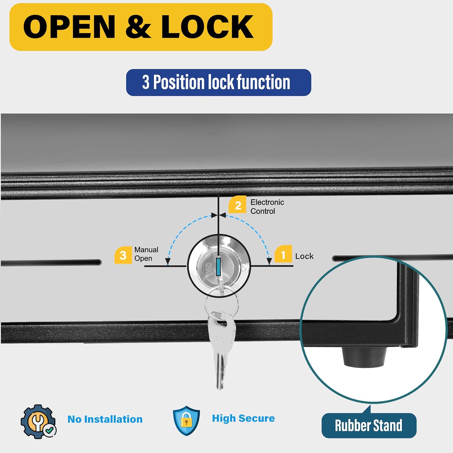 - 🔑🔒 6 Keys Included + Extra Accessories are available: Comes with 6 keys. Additional accessories available for purchase include Extra keys (ASIN: B08L8BMML4), Unique Key and Lock (ASIN: B07D5LJDQJ), and Under Counter Mounting Metal Bracket (ASIN: B07PXGV3YY) are available, if needed.