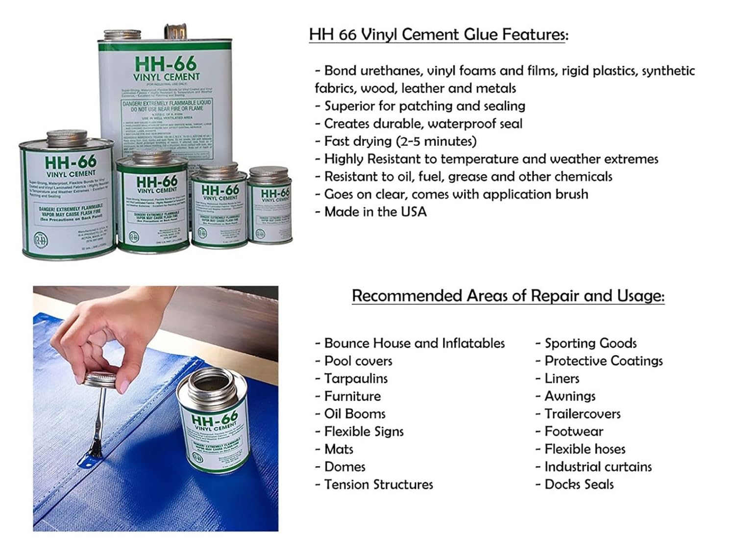 - INCLUDES - Storage Container, 9 Patches, 4-ounce HH66 Vinyl Adhesive, Steinel Silicone Seam Roller