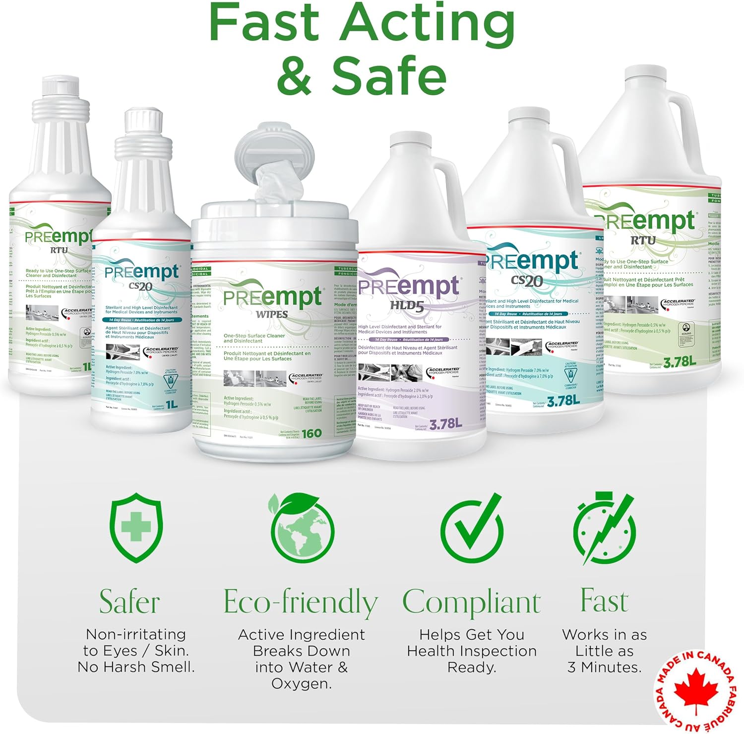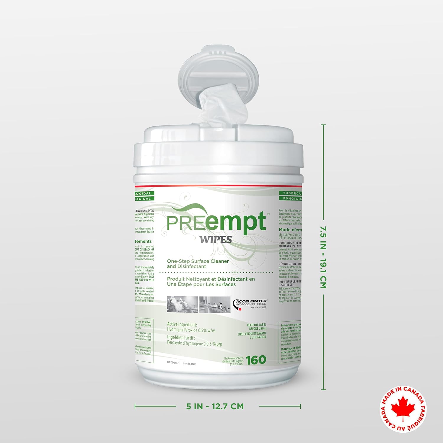 - Preempt One-Step Disinfectant Cleaner Wipes conveniently disinfect surfaces in as little as 1 minute. Easy to use, offering you quick and efficient disinfection every time. Powered by patented Accelerated Hydrogen Peroxide Technology. Only AHP combines unmatched efficacy with environmental integrity and application safety.