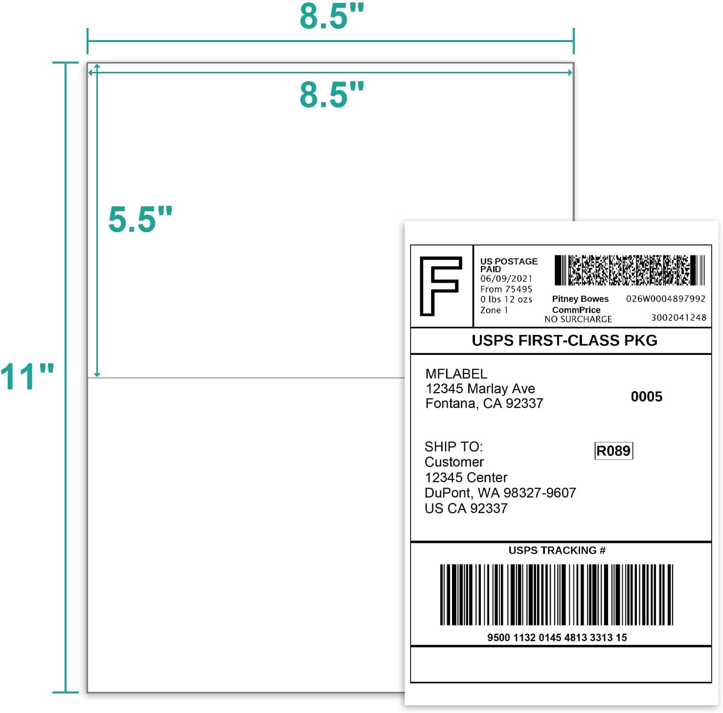 MFLABEL Half Sheet Label Laser/Ink Jet USPS UPS FedEx Shipping Label 8.5 x 11 Inches Packaging Labels, Address Labels for Laser & Inkjet Printers, 5000 Count(2500 Sheets)