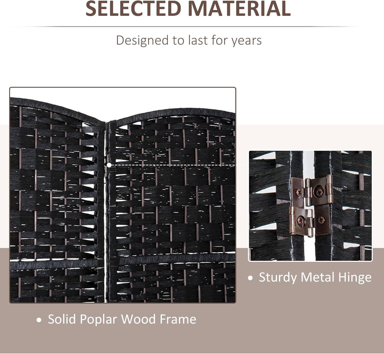 HOMCOM Room Divider 4 Panels Folding Privacy Screen 6FT Tall Portable Wicker Weave Partition Wall Divider for Bedroom Home Office, Black