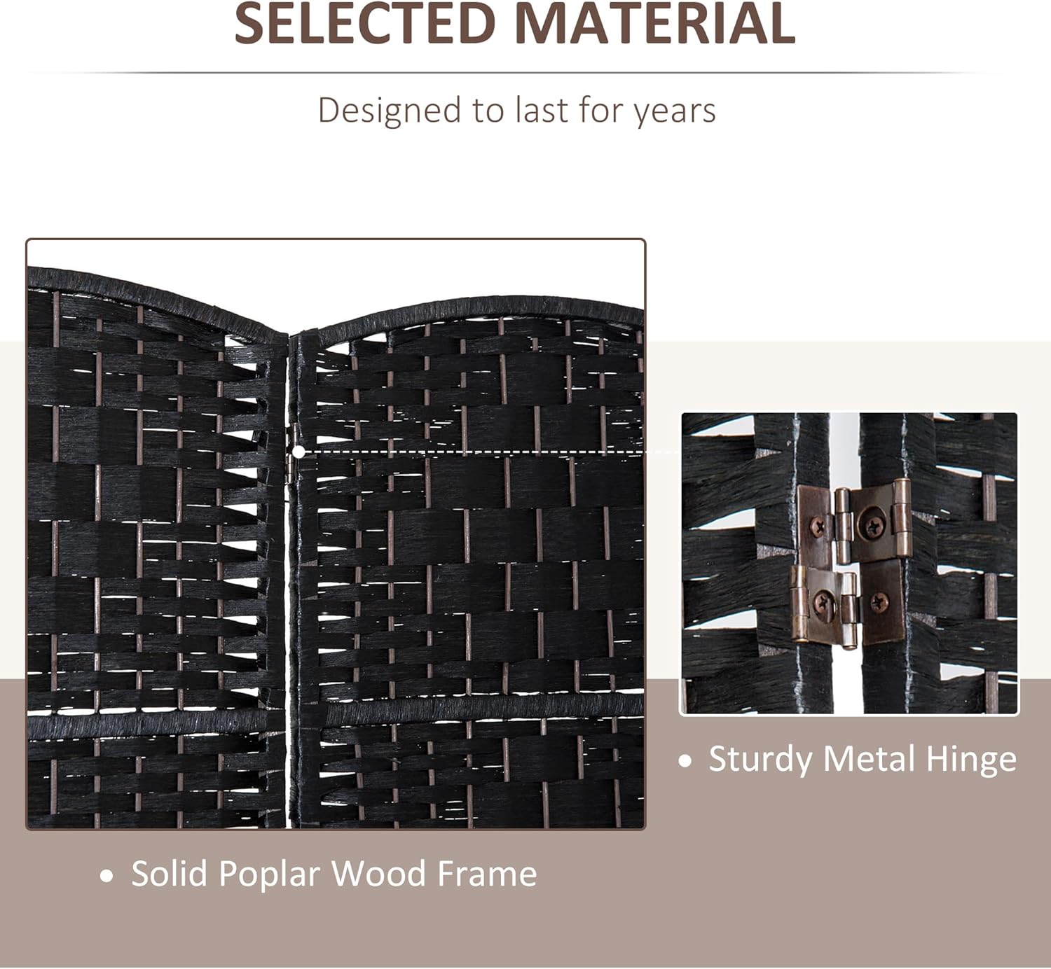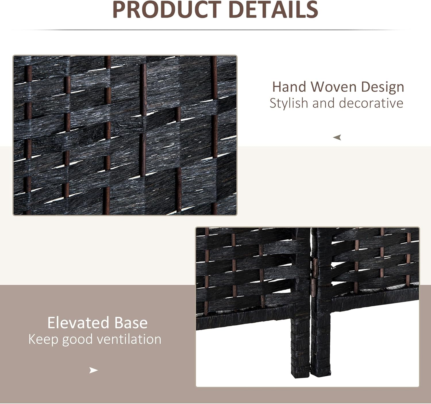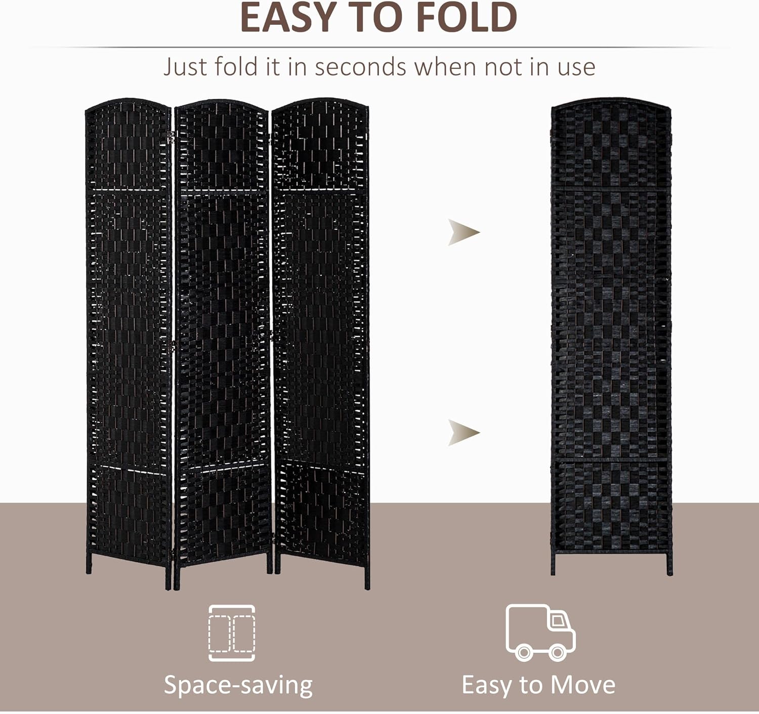 HOMCOM Room Divider, 3 Panel Folding Privacy Screen, 6FT Tall Portable Wicker Weave Partition Wall Divider for Bedroom, Home Office, Black