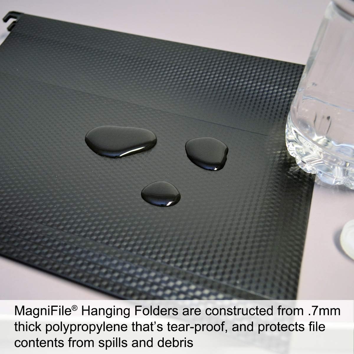 - LIFETIME GUARANTEE - Traditional hanging files are made of paper that rips, hangers that bend easily, and labels that often need replacing. All MagniFile products are constructed with spill-resistant, tear-proof, black polypropylene and come with an UNCONDITIONAL LIFETIME-GUARANTEE! BUY THEM ONCE. . . USE THEM FOREVER