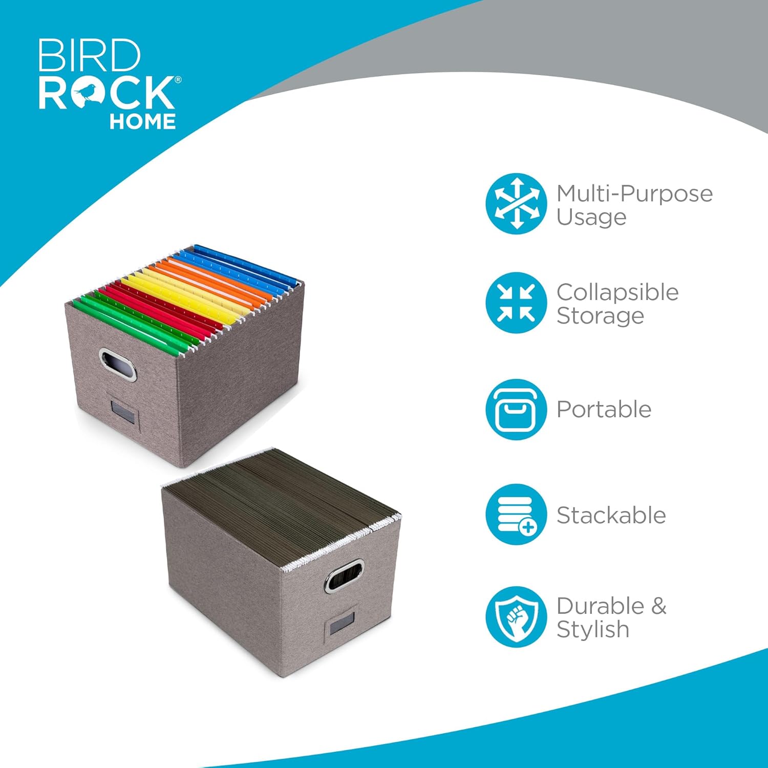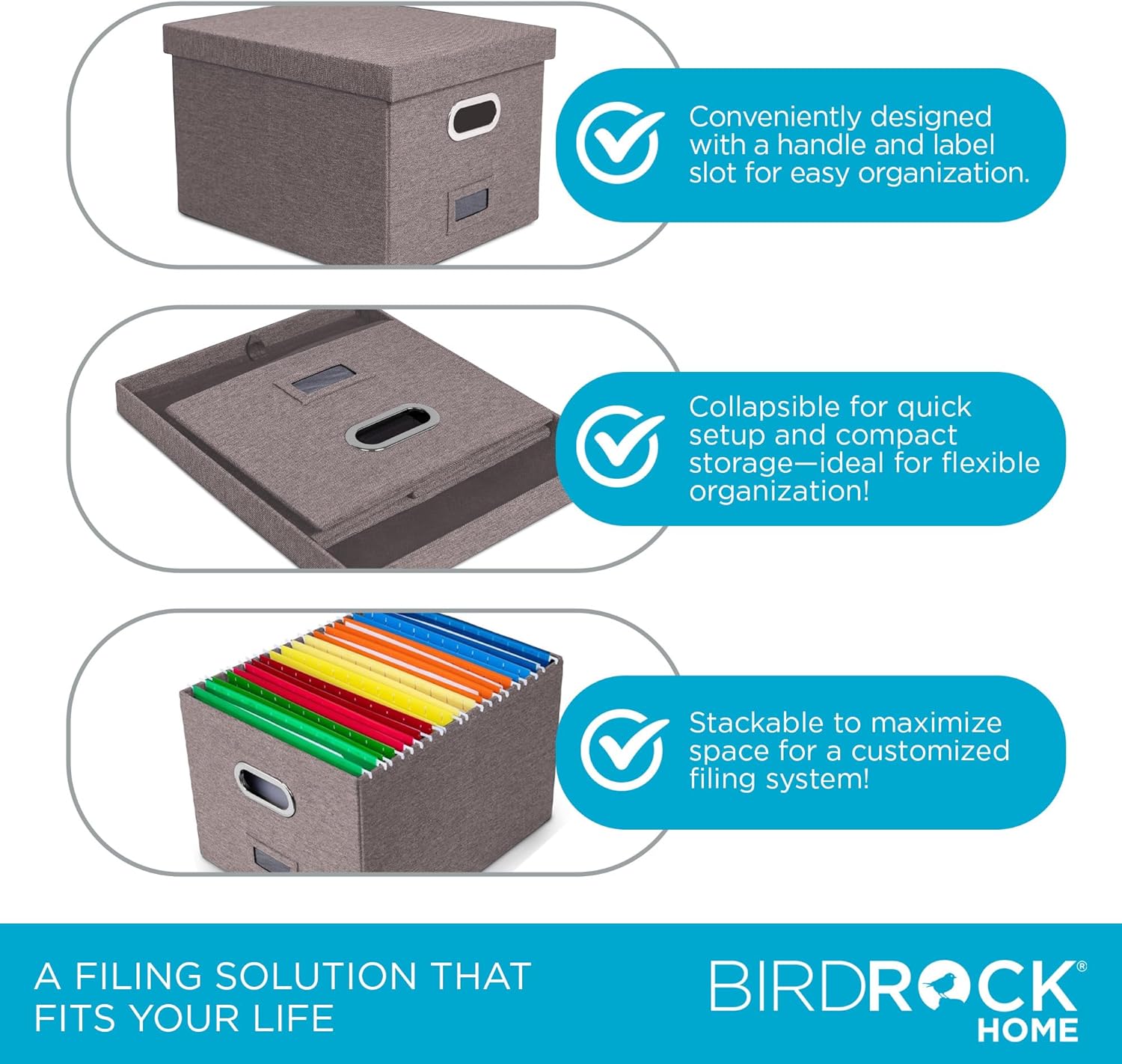 Internet's Best Collapsible File Box Storage Organizer with Lid - Decorative Linen Filing & Storage Office Boxes – Hanging Letter/Legal Folder – Home Office Bins Cabinet – Grey Container - 1 Pack