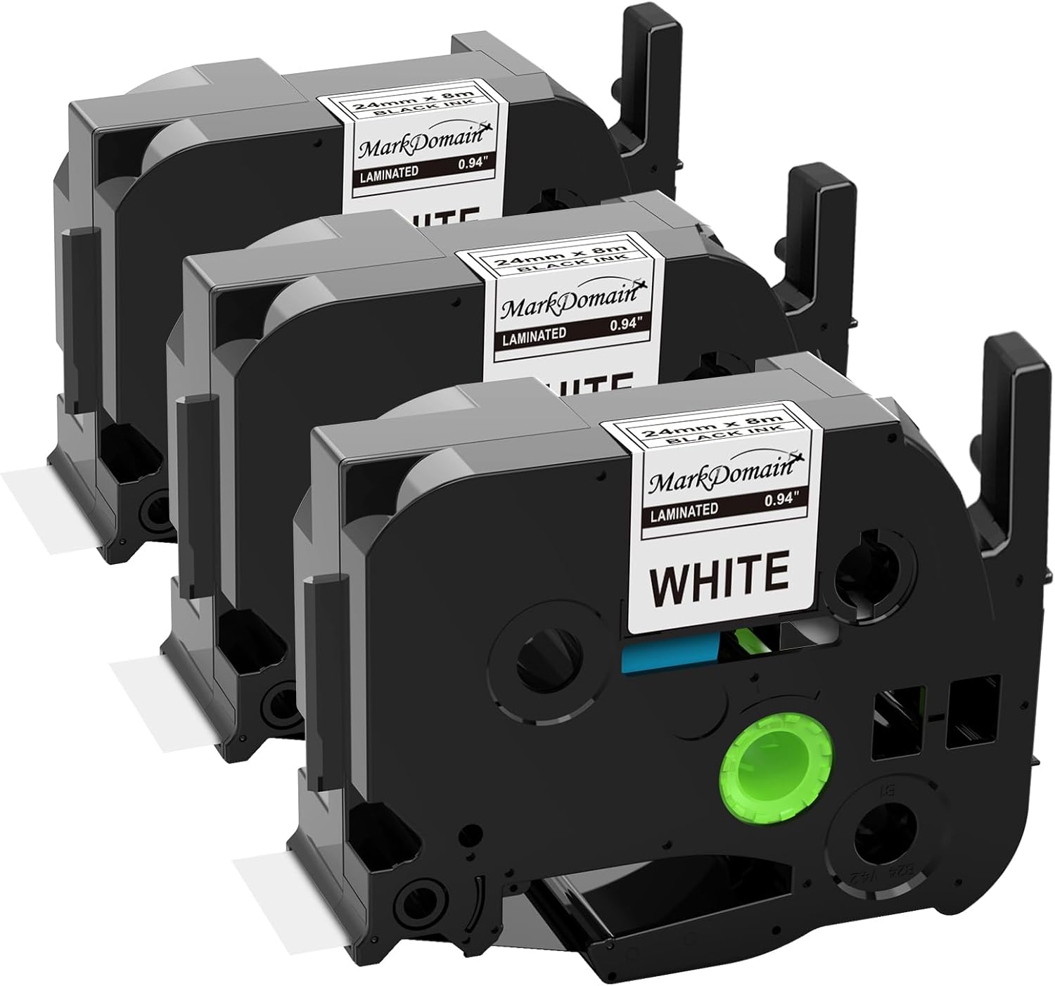 MarkDomain TZe-251 24mm Label Tape Compatible Brother P Touch TZe TZ Tape 24mm 0.94 Laminated White TZe-251 TZe251 TZ251 1 Inch for Ptouch PT-D600 PT-D610BT PTP700 PTP710BT Label Maker, 3-Pack