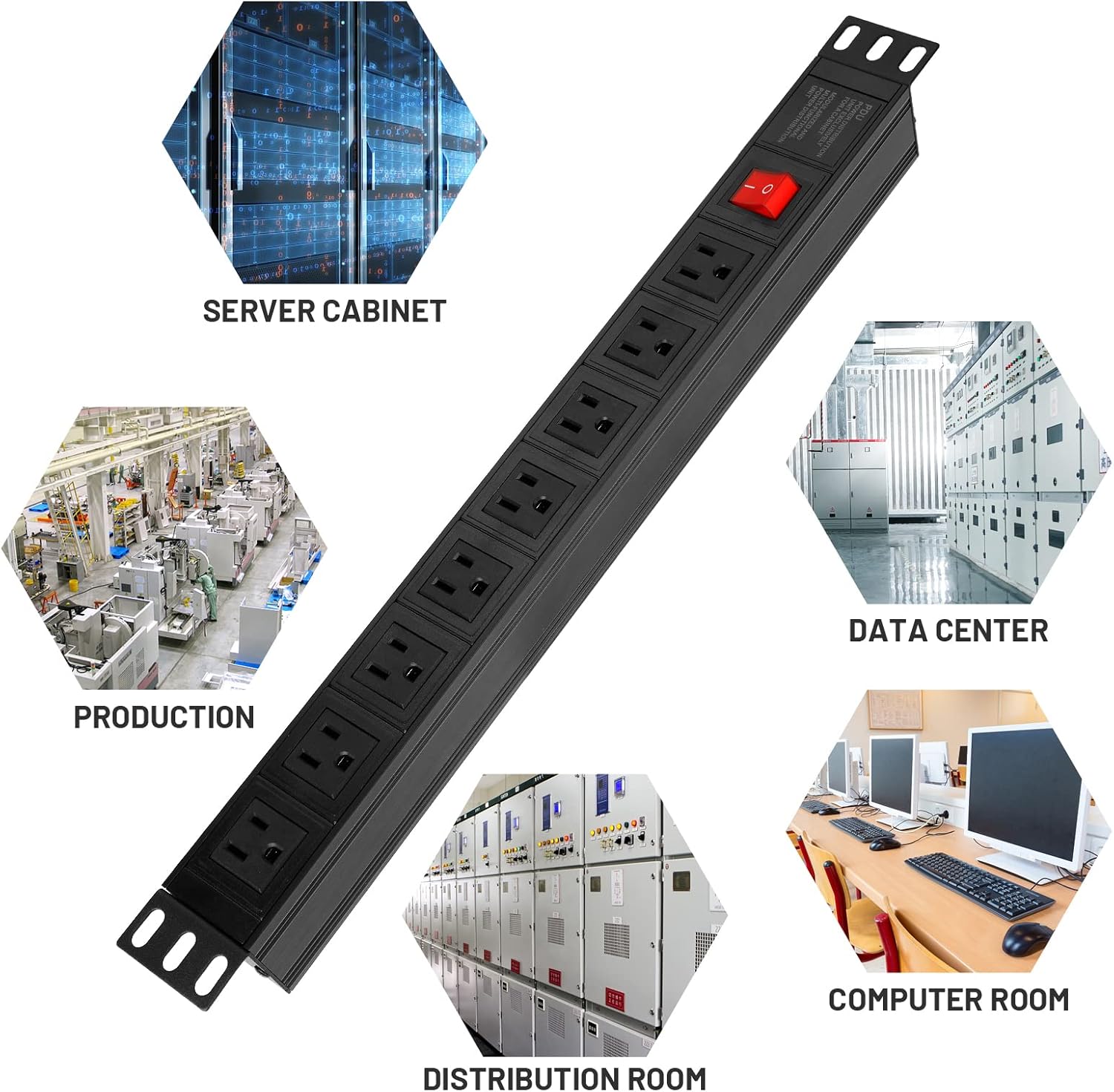 - 【1U Rack Mount Design】: 19 inch power strip compatible with all 19” server racks. The power distribution unit is designed for rack enclosure, garage, workshop, office, cabinet, work bench, wall mount, under counter and other mount installation applications, provides a neat look to your work station