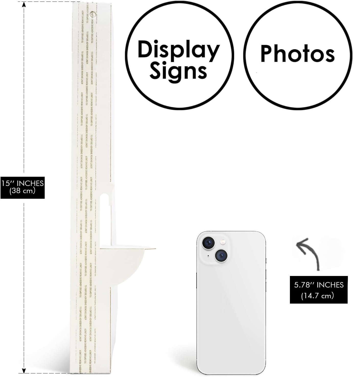 - Package: This adhesive easel measures at 15 inches, with a single wing. Pack of 50, White