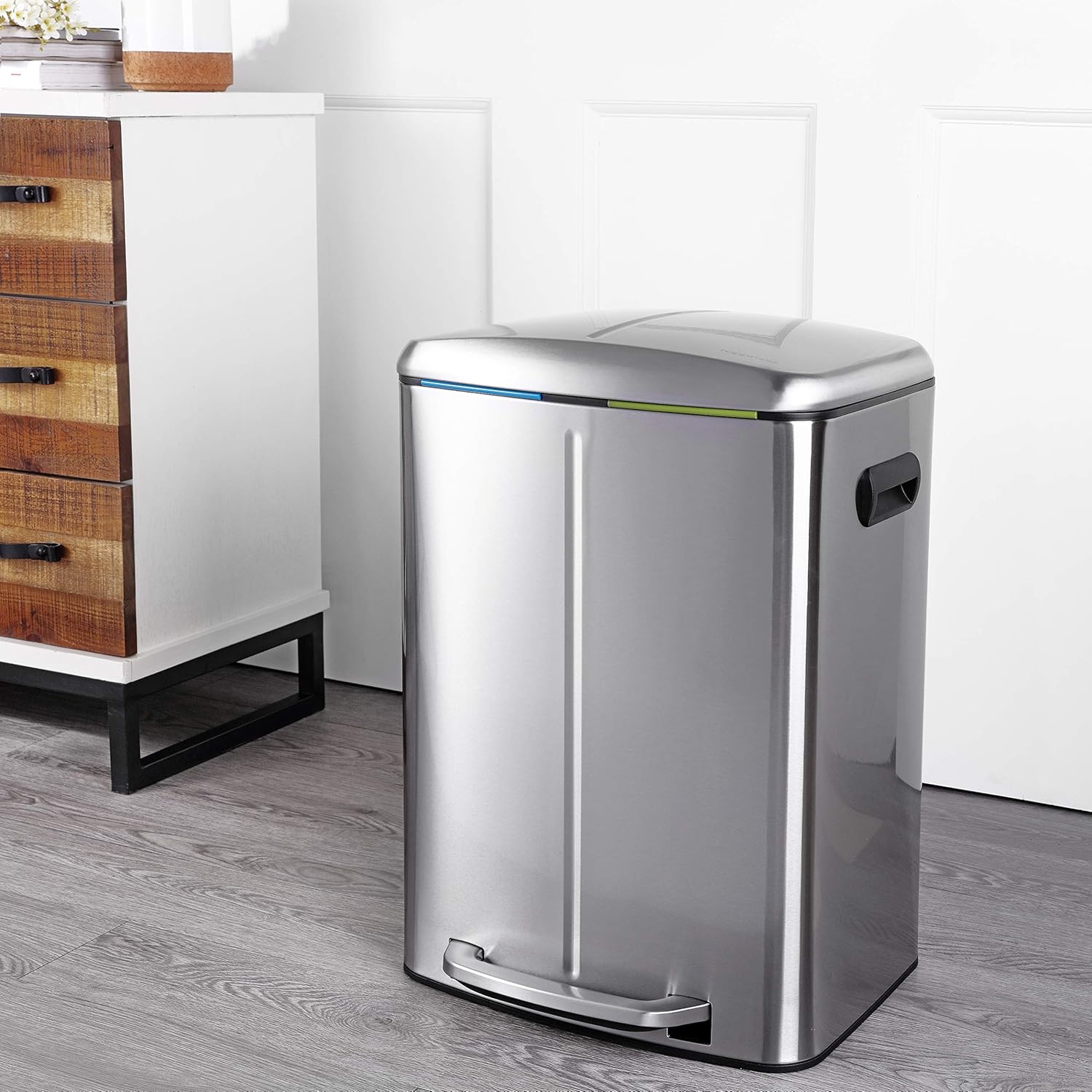 happimess HPM1005A Marco Rectangular 10.5-Gallon Double Bucket Trash Can with Soft-Close Lid, Modern, Minimalistic, Fingerprint Proof for Home, Kitchen, Laundry Room, Office, Stainless Steel