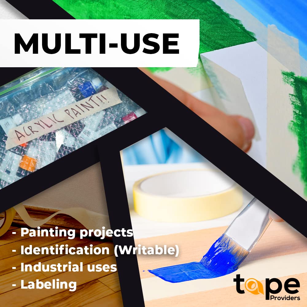 - GENERAL PURPOSE AND HIGH DEMAND APPLICATIONS - This High Quality Masking Tape works great for package sealing, taping off guitar fretboards, drafting table work, concealing wires on ceiling, holding the paper flat, taping off car headlights, labeling moving items and cans, closing boxes, taping boxes, holding art paper on drawing board.