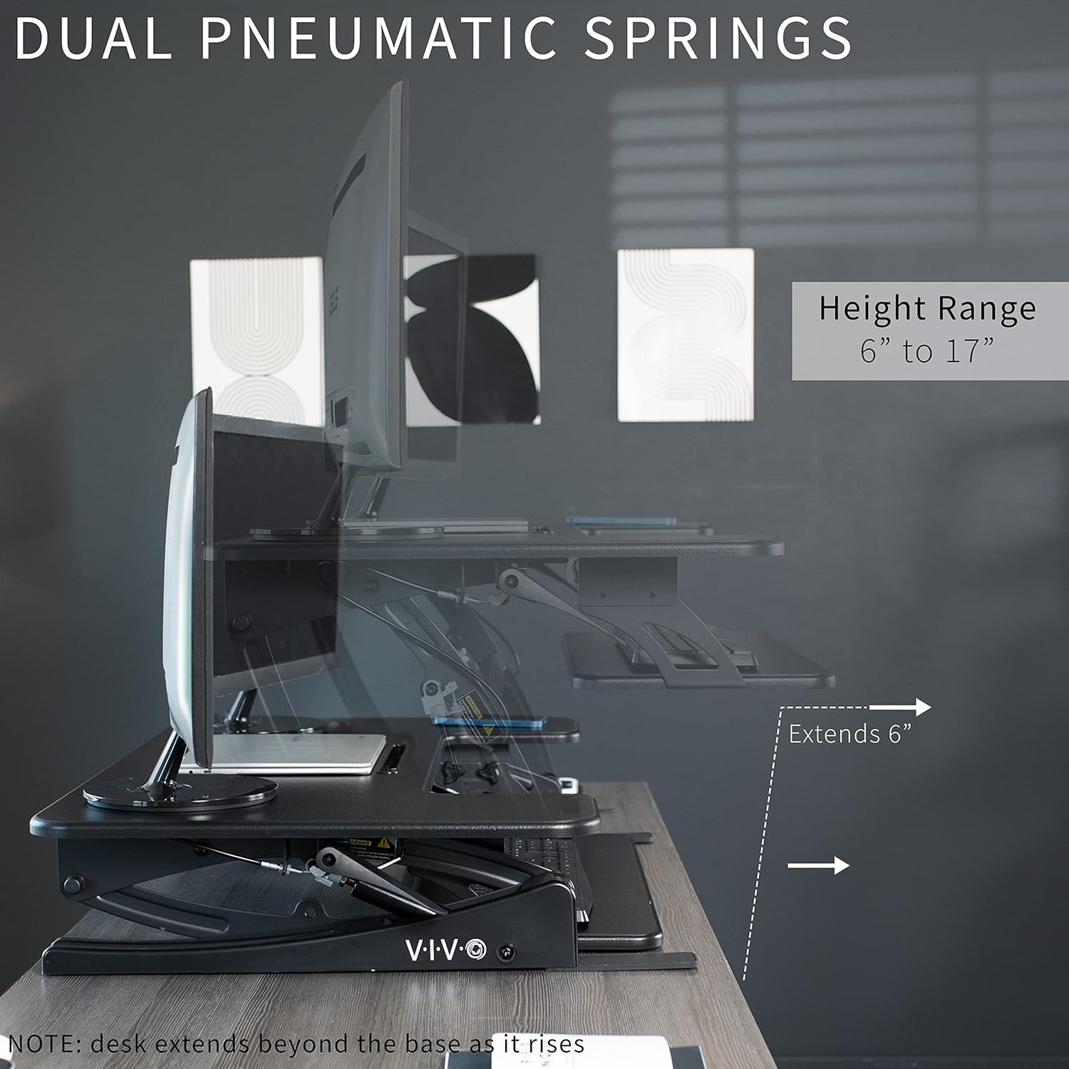 VIVO 42 inch Height Adjustable Stand Up Desk Converter, V Series, Quick Sit to Stand Tabletop Dual Monitor Riser Workstation, Black, DESK-V000VL