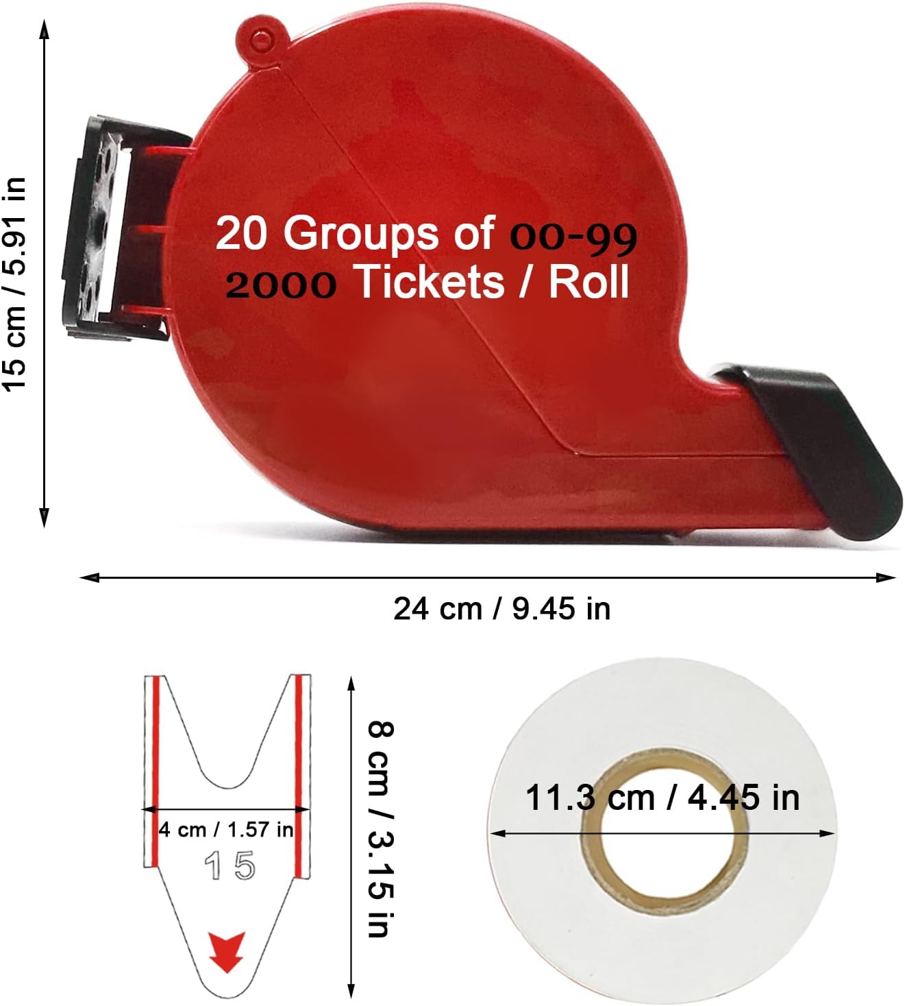 Ticket Dispenser Take a Number Ticket Number Dispenser with 1 Roll 2 Digit Ticket Roll 20 Groups Number from 00-99 (2 Digit, red)