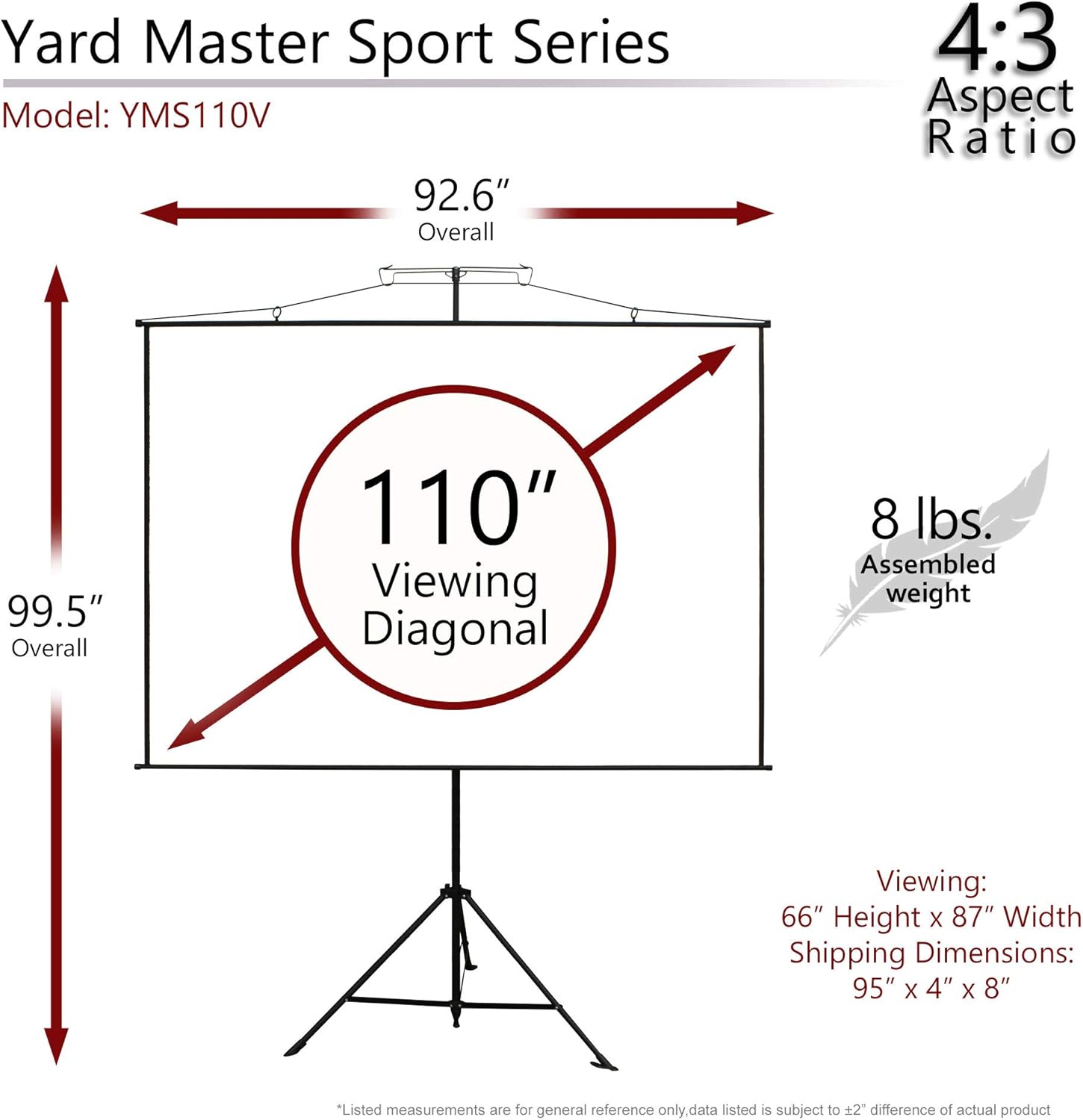 Elite Screens Yard Master Sport, 110-Inch Portable Projector Screen, Dual Tripod/Wall Hanging 2-in-1 Design, 4:3, MaxWhite 1.1 Gain, 180 Degrees, 4K Ultra HD & 3D Ready, Indoor/Outdoor w/ Carry Bag
