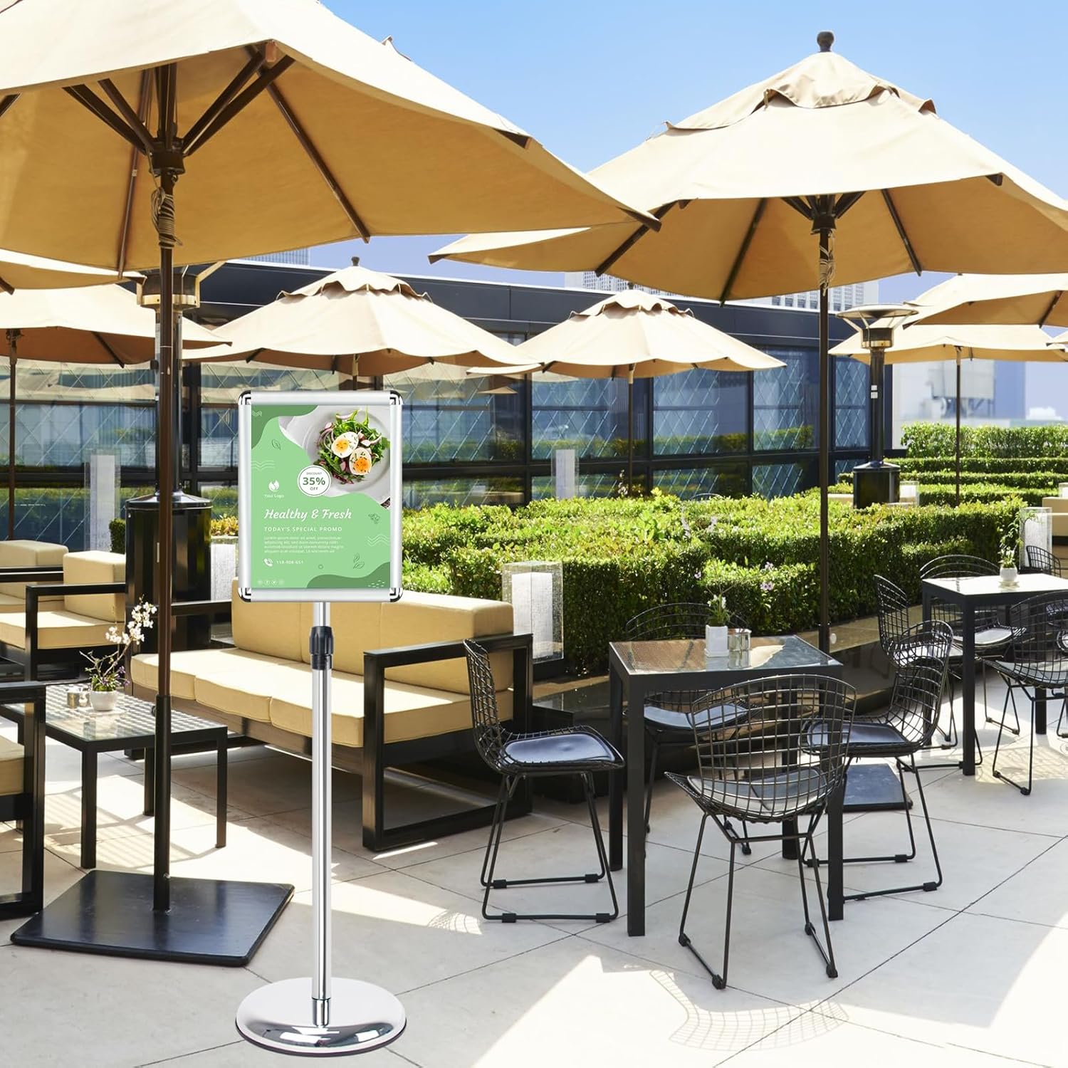 - ➽Suitable for Indoor&Outdoor: The surface of the poster stand has a PVC Protection lens, so no matter you are indoor or outdoor, which make the poster always keep clear.