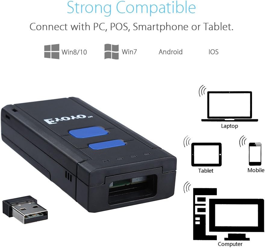 - Pocket Design, Compact & Convenient: The compact and lightweight Eyoyo portable barcode scanner easily fits in your pocket or bag. Whether in the office, warehouse, or outdoors, you can perform efficient scans anytime, anywhere. Whether conducting book inventory checks in the warehouse or quick checkouts in the retail store, this eyoyo scanner handles it all with ease