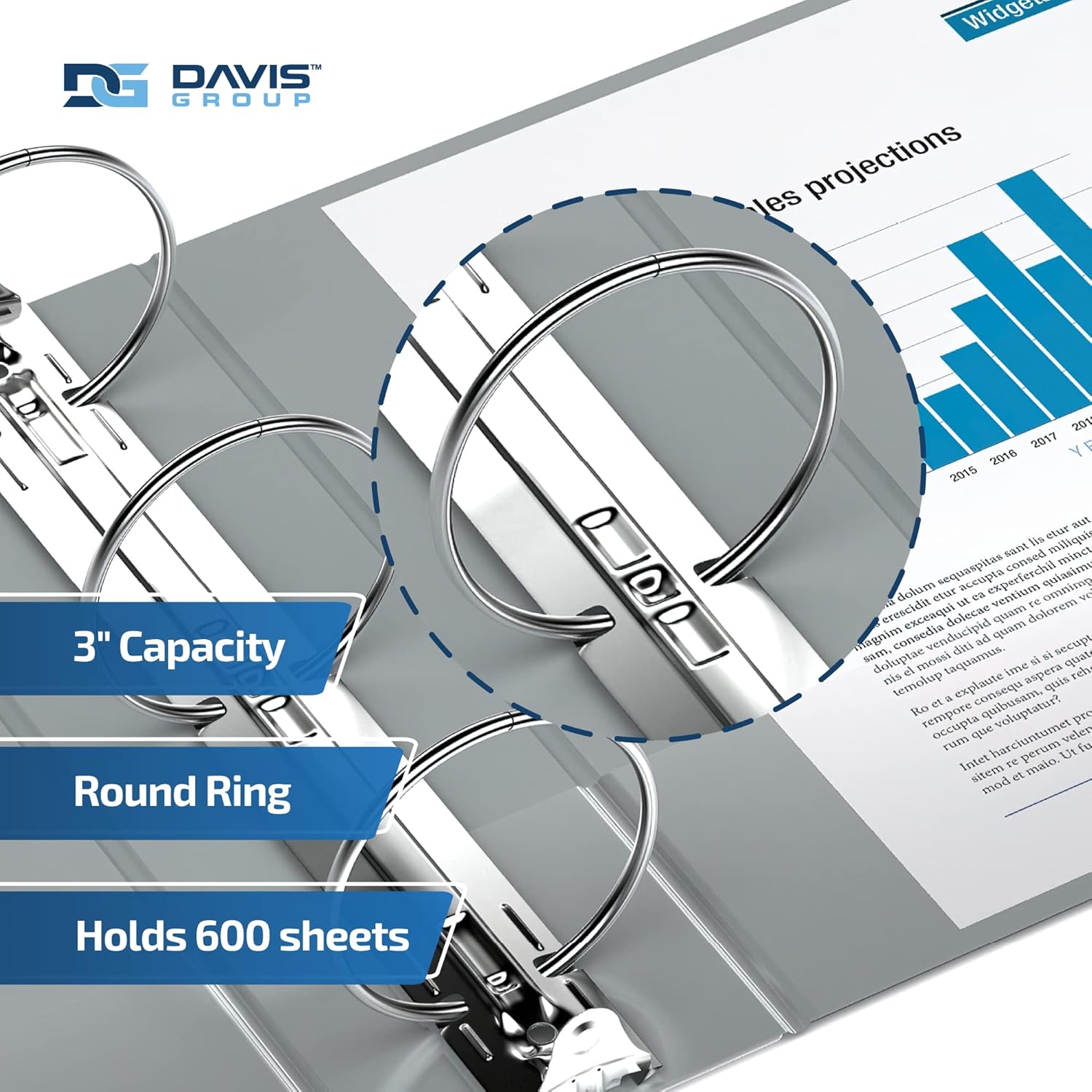 - ROUND-RING BINDERS: These big binders feature round rings and come in 1-inch, 1.5-inch, 2-inch, and 3-inch sizes. The 1-inch binder holds 200 sheets of paper, the 1.5-inch binder holds 275 sheets of paper, the 2-inch binder holds 400 sheets of paper, and the 3-inch binder holds 600 sheets of paper.