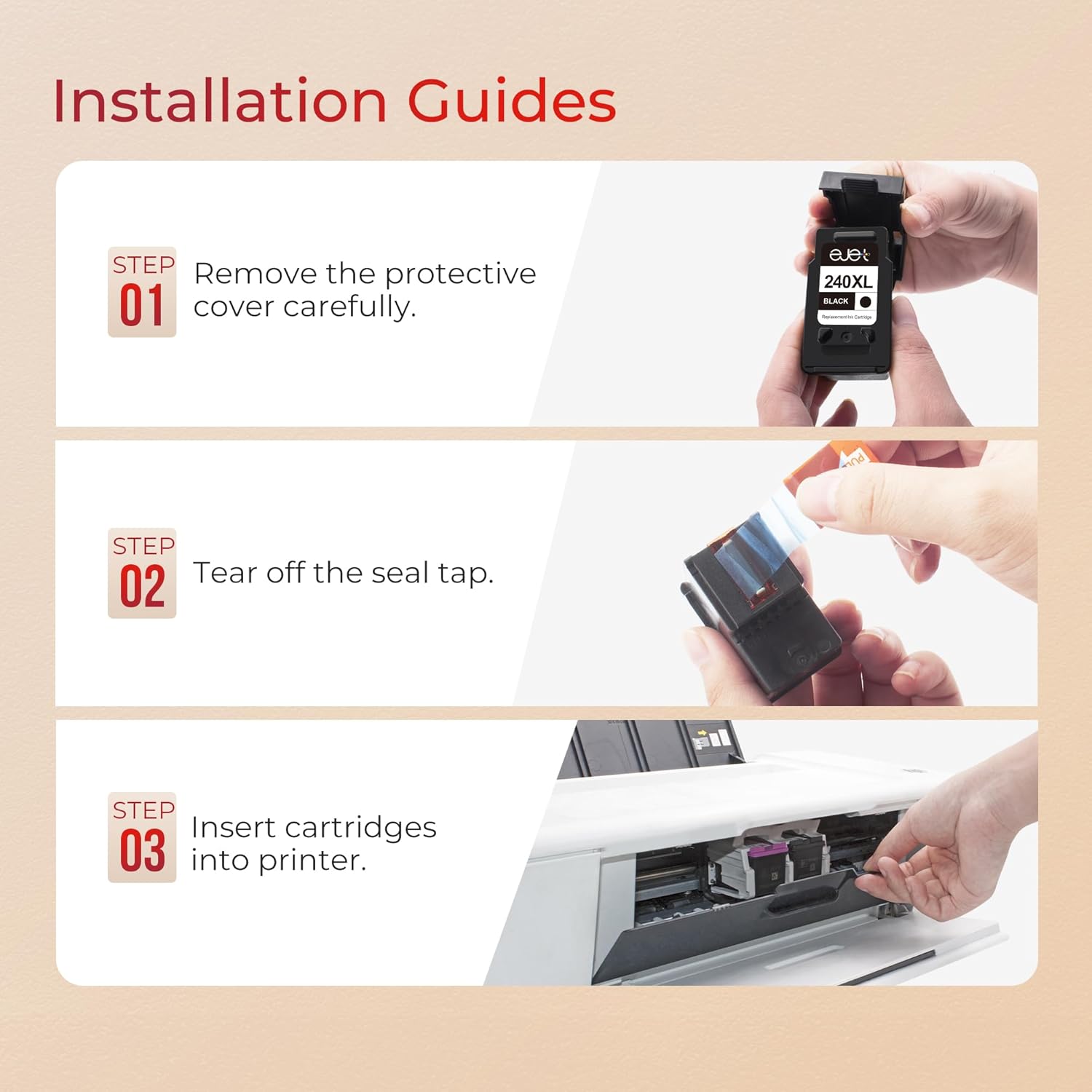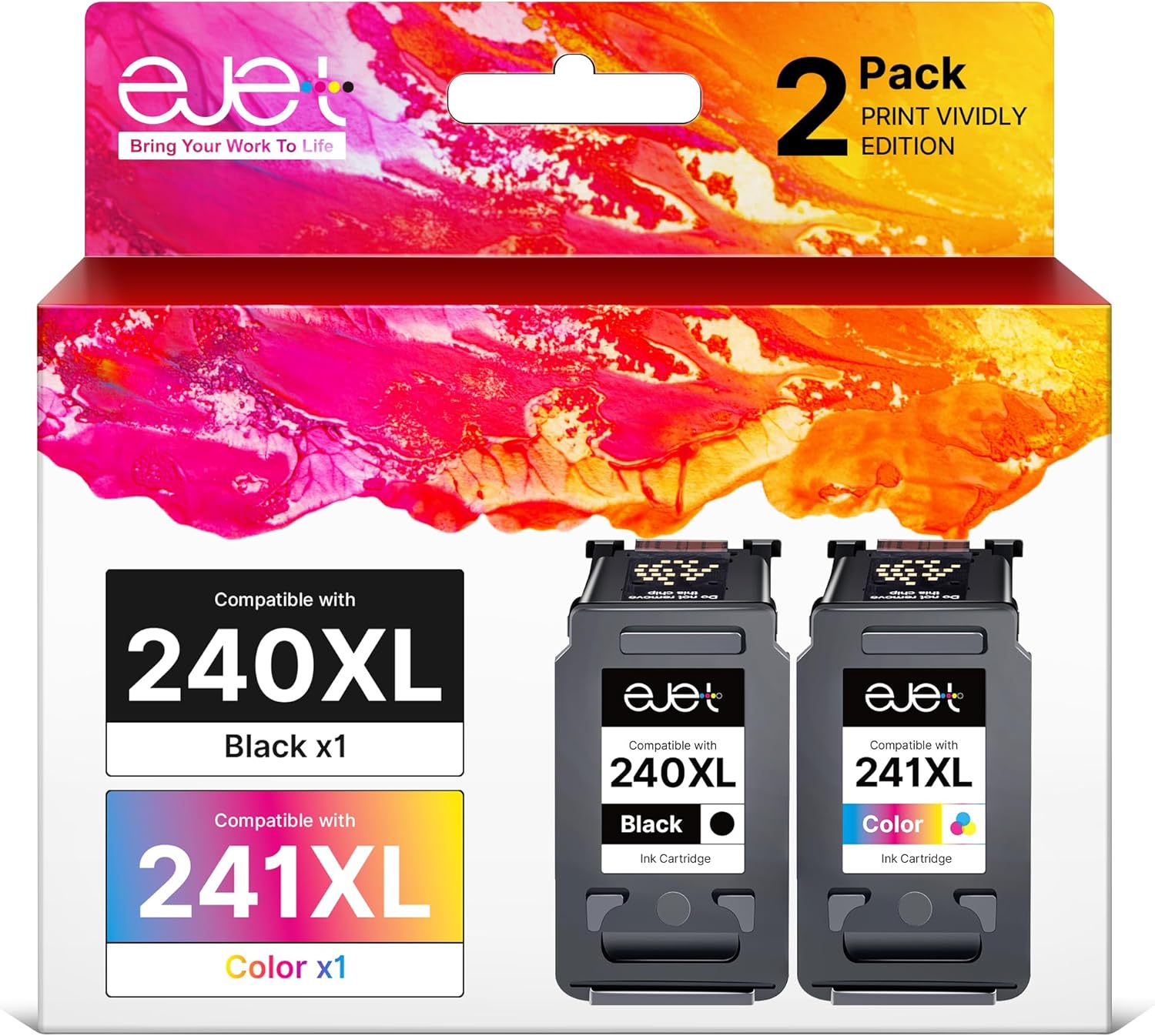 - 【240XL and 241XL Ink cartridge Equip with Latest Chips】 ejet 240XL and 241XL Ink cartridge high yield equipped with upgraded smart chips ensure each ink cartridge will be 100% recognized by compatible printers quickly and display accurate ink level, you can enjoy worry-free and efficient printing