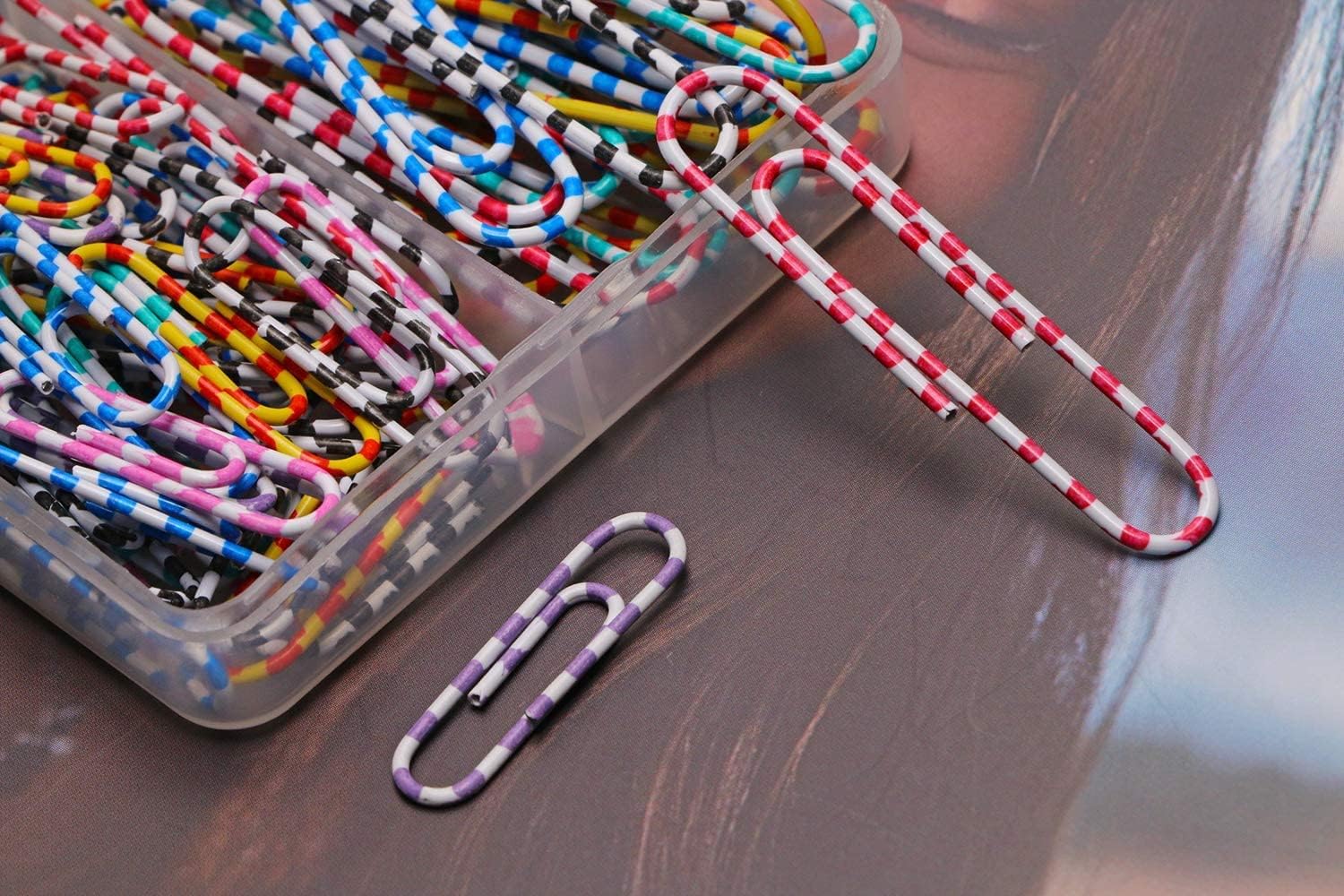 Vinaco Paper Clips Color Stripe, 400PCS Medium & Large (1.3 inch & 2 inch) Paper Clip Assored Size, Durable and Rustproof, Vinyl Coated Paperclips Colorful for Office School Document Organizing