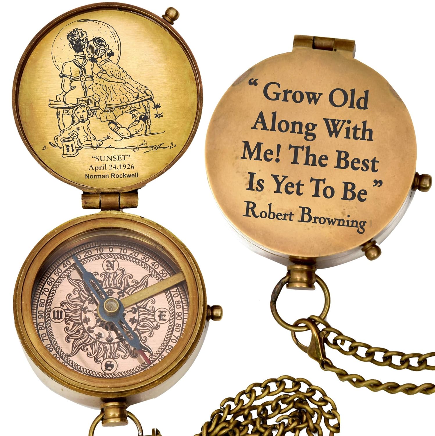 grow old along with me engraved compass with norman rockwell "sunset" engraving, valentine gift, anniversary gift, birthday, long distance, love, Sorry, Keepsakes, old memories, Love momentos