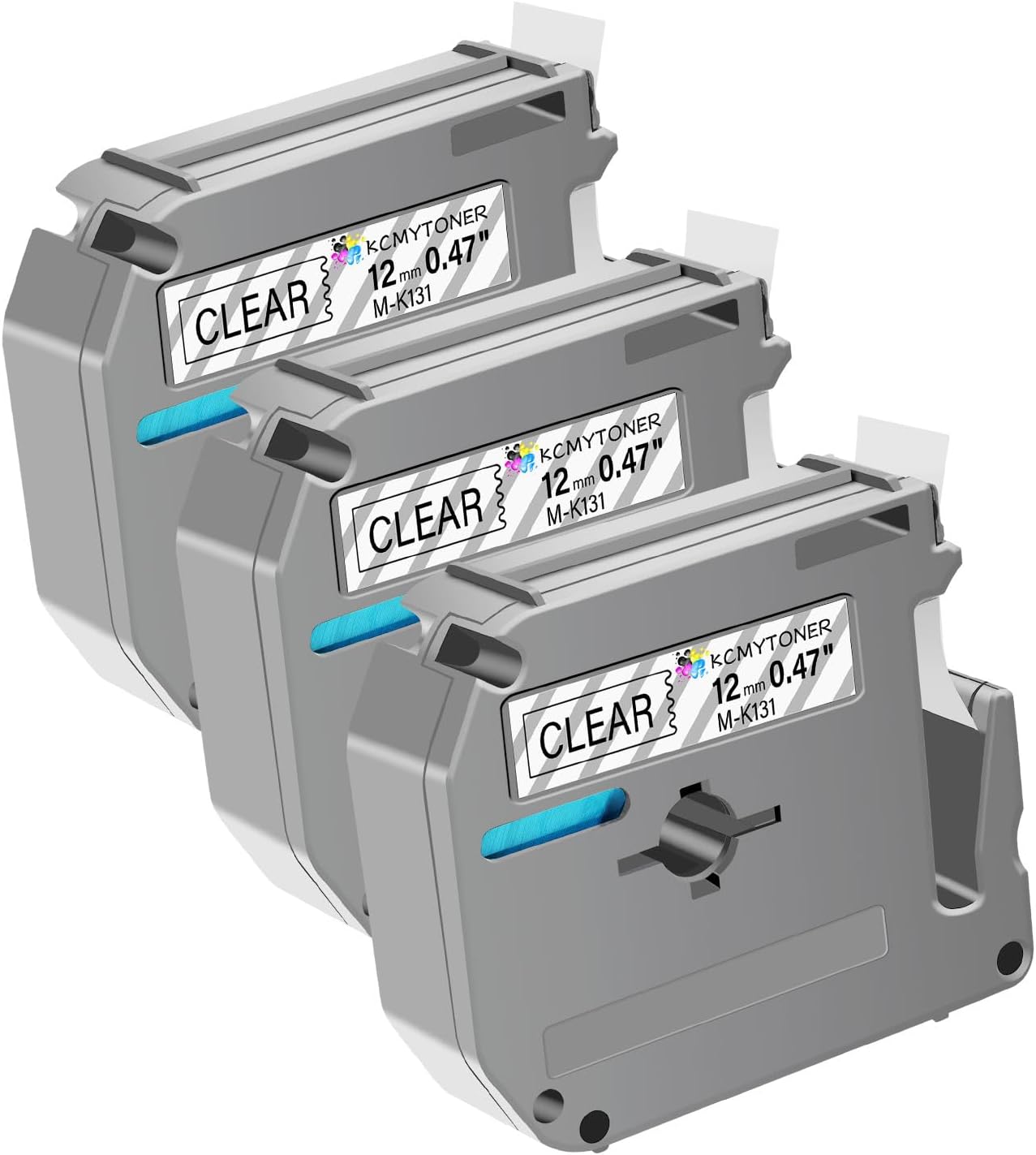 Compatible for Brother P-Touch M Tape M-K131 MK131 M131 MK-131 Black on Clear Label Tape 0.47" (12mm) x 26.2ft for PT-90 PT-M95 PT-70 PT-70BM PT-85 PT-80 PT-45 PT-65 Label Makers, 3 Pack